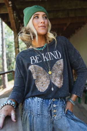 Bringing you the cutest long-sleeve version of your favorite graphic tee, the Be Kind Long Sleeve Graphic Top has arrived—and you're going to love it all season long!