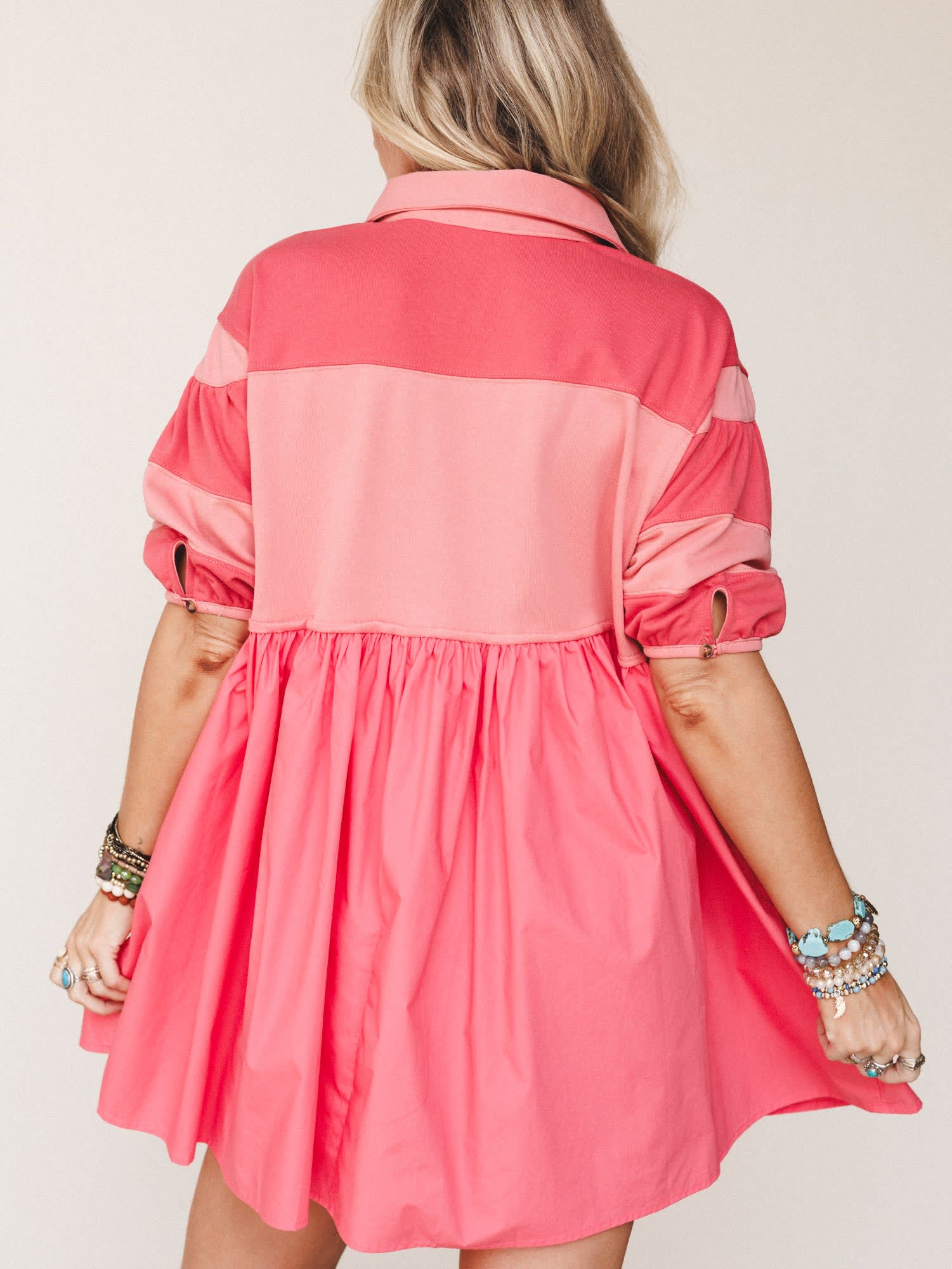 This vibrant mini is where preppy meets playful. With bold colorblocking and a flirty silhouette, the Beachwood Prep Mini Dress is made for brunch dates, festivals, and spontaneous weekend plans.
