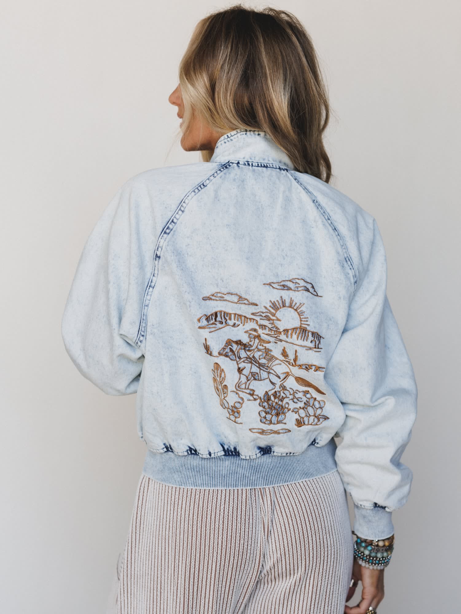 - Includes the Beauty of the West Embroidered Jacket with western landscape stitching for a standout denim layer