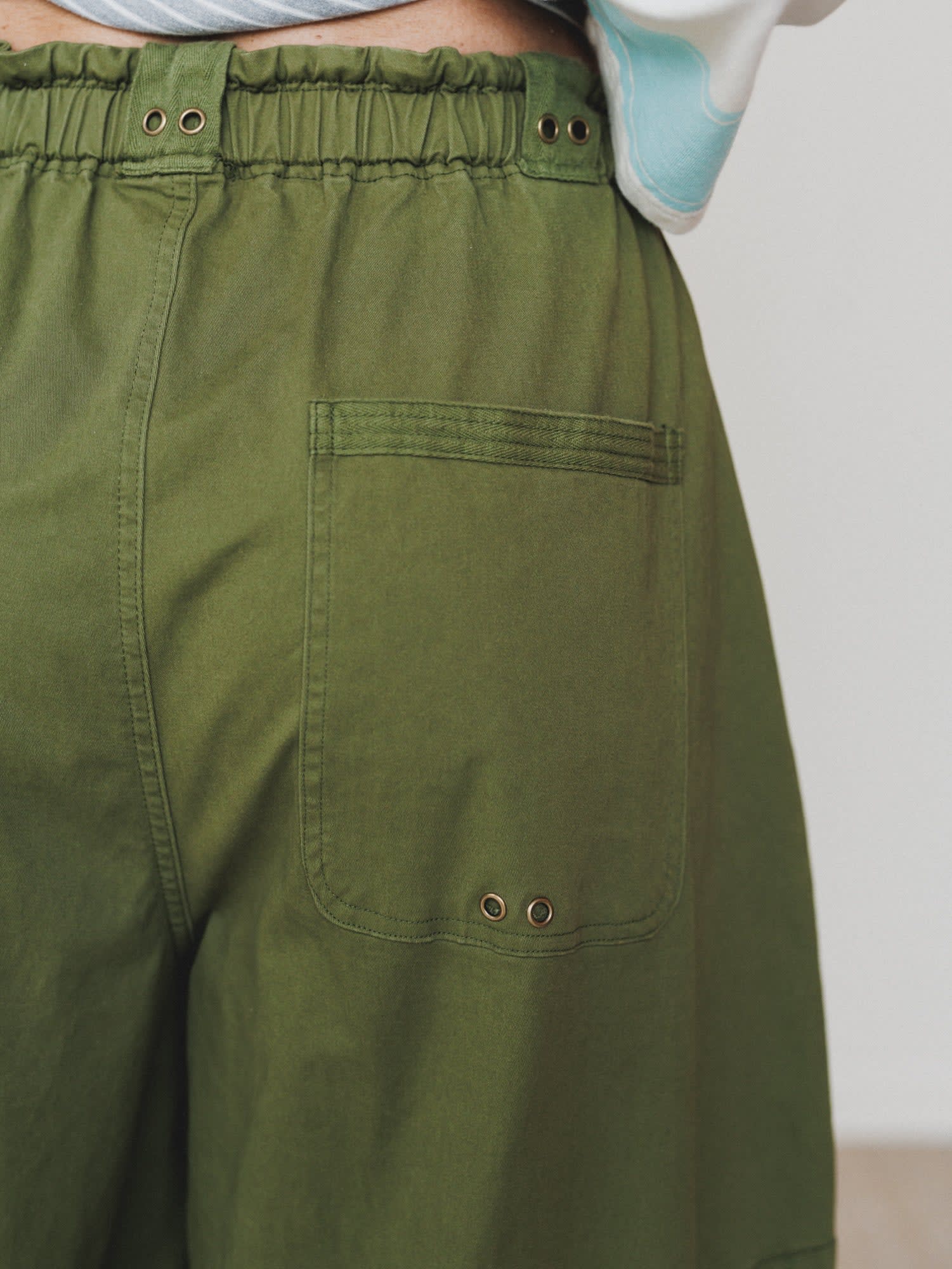 - Elastic waistband with adjustable drawstring for a flexible, flattering fit