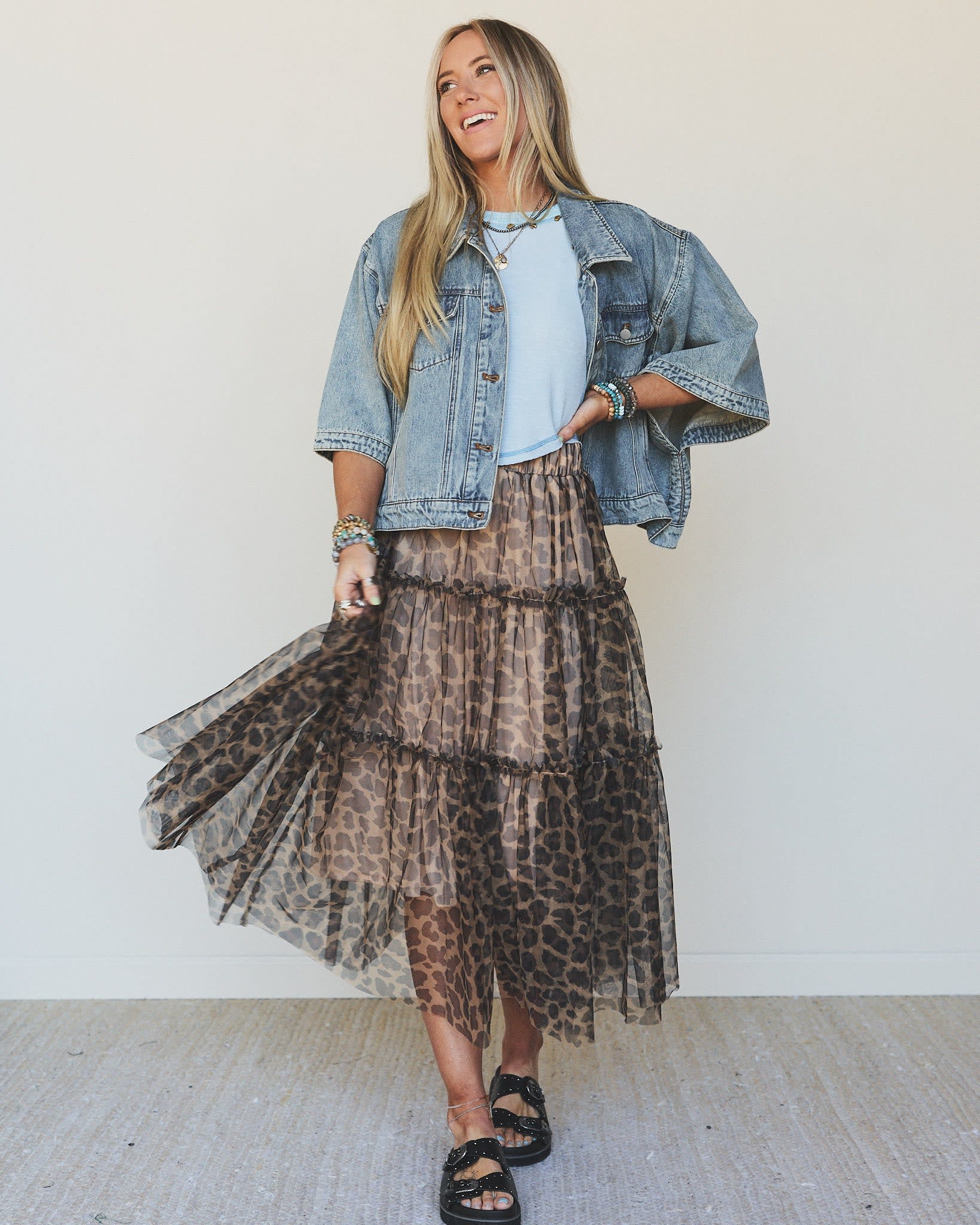 • Wild Night Maxi Skirt: Leopard mesh tiers and effortless flow make this sheer statement skirt the star of the show