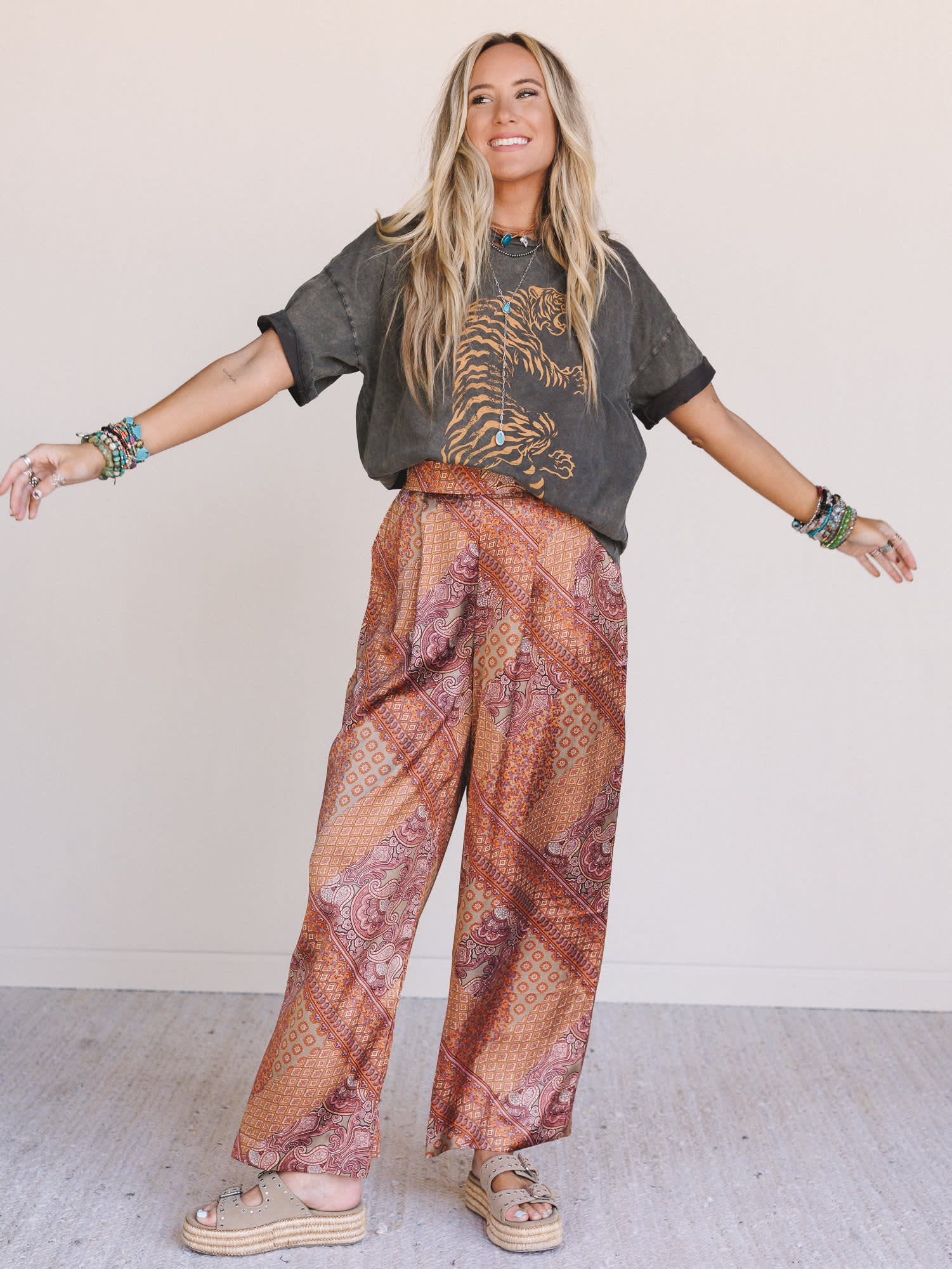 Float through your day in effortless boho style with the Birch Paisley Wide Leg Pants. Made for the free-spirited soul, these dreamy trousers are full of movement, color, and vintage-inspired charm.