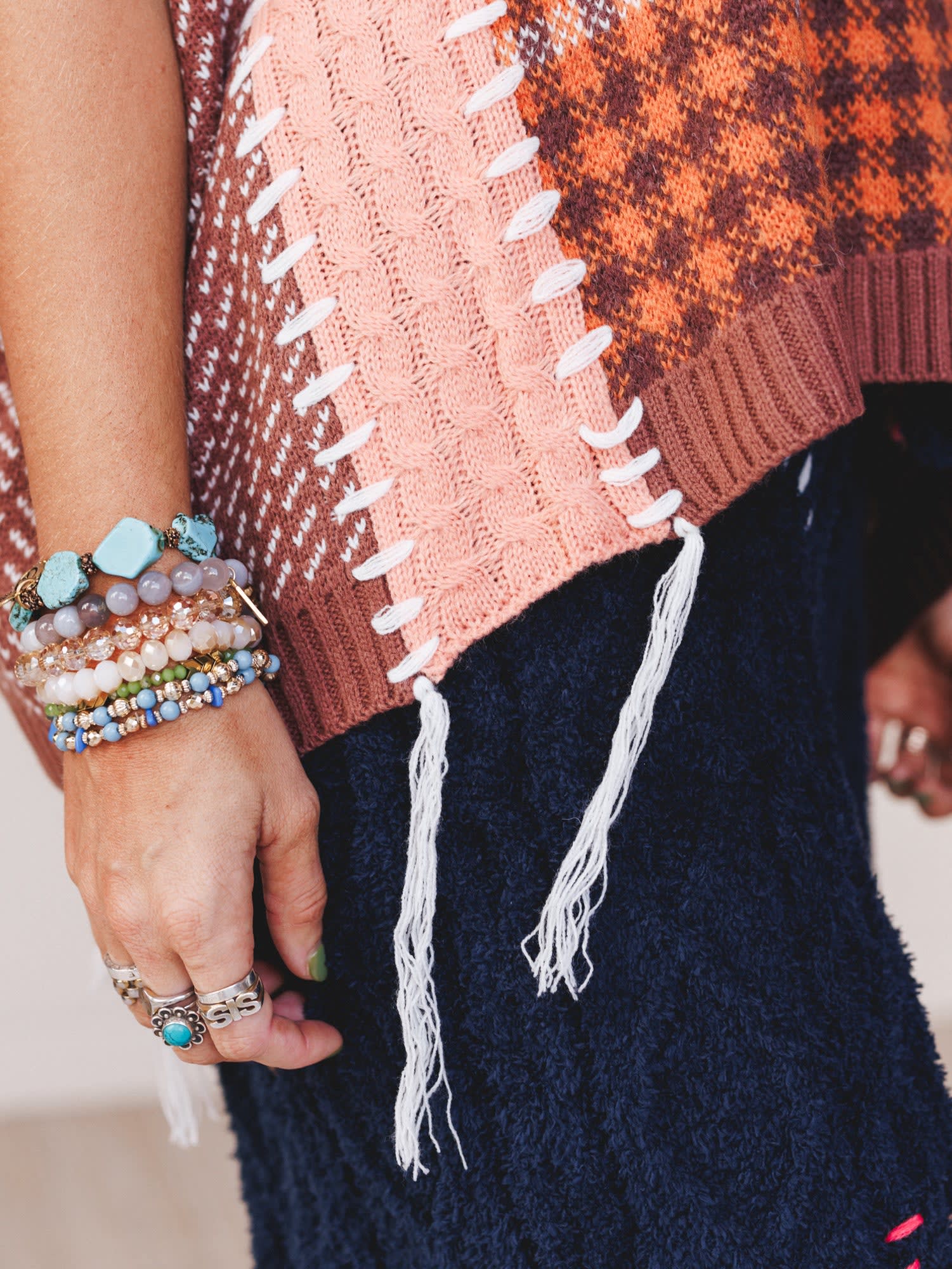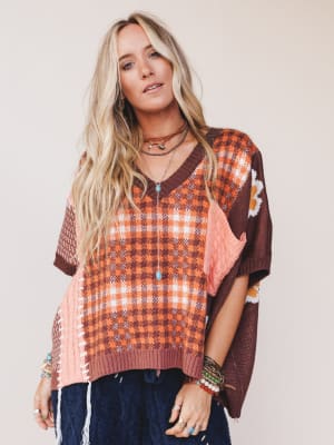 Get ready to fall head over heels for the Blanket Crush Sweater—an oversized patchwork knit that feels like wrapping yourself in your coziest throw, but way cuter.