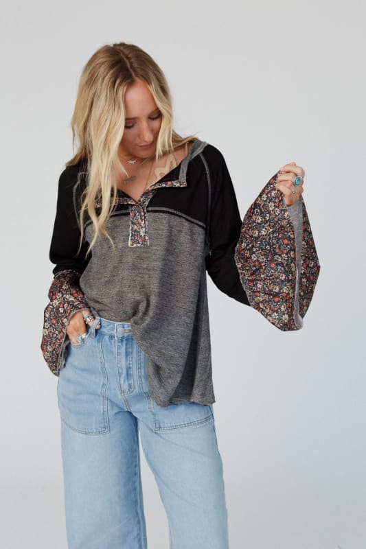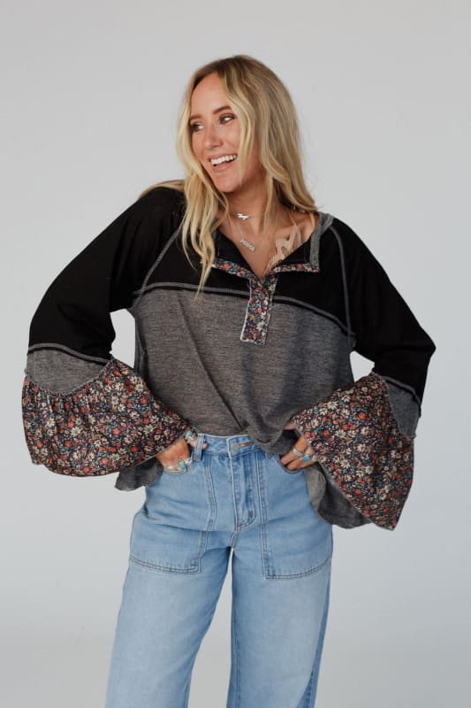 The Blooms Of Love Contrast Top is the ultimate boho wardrobe essential!