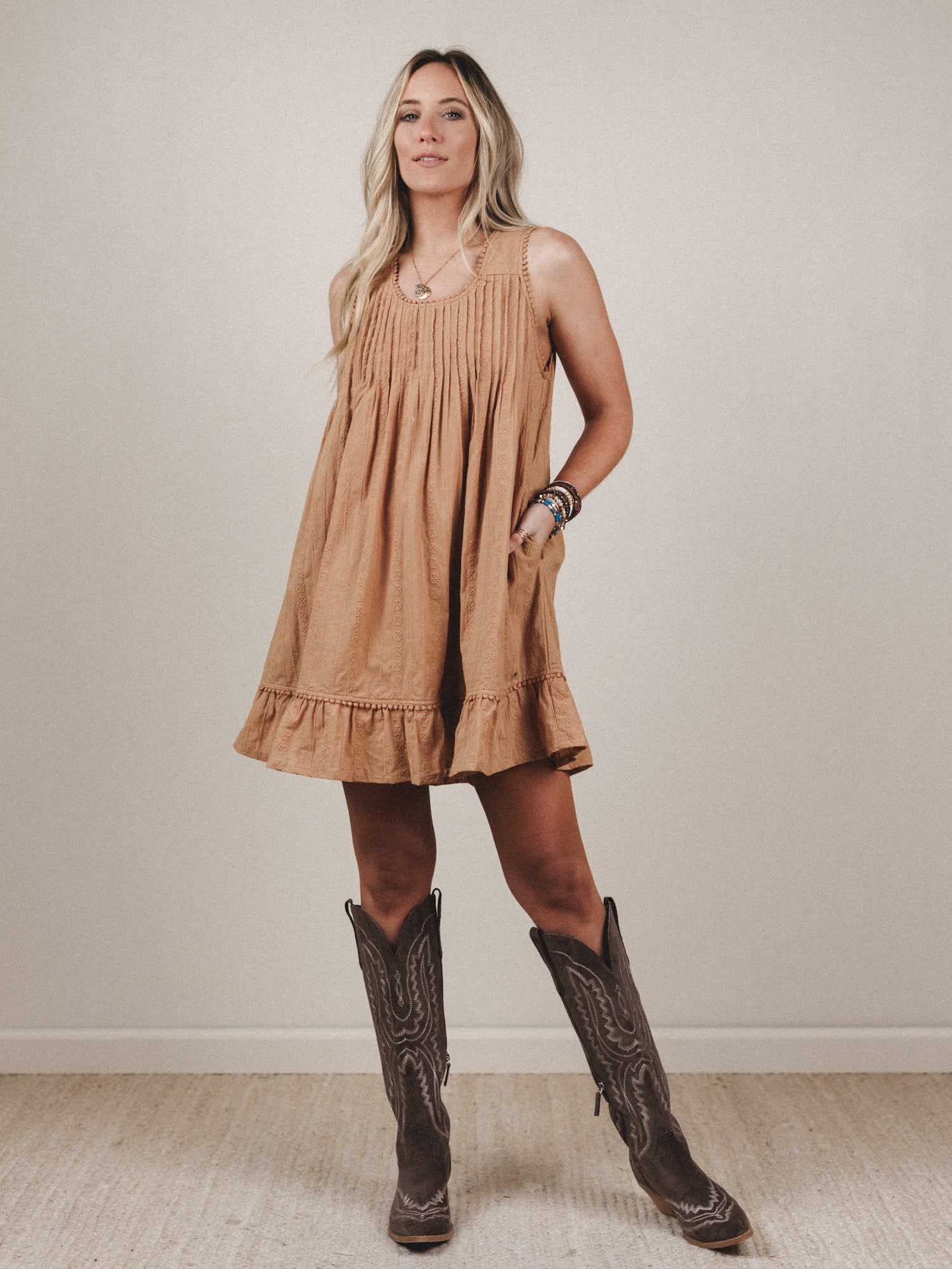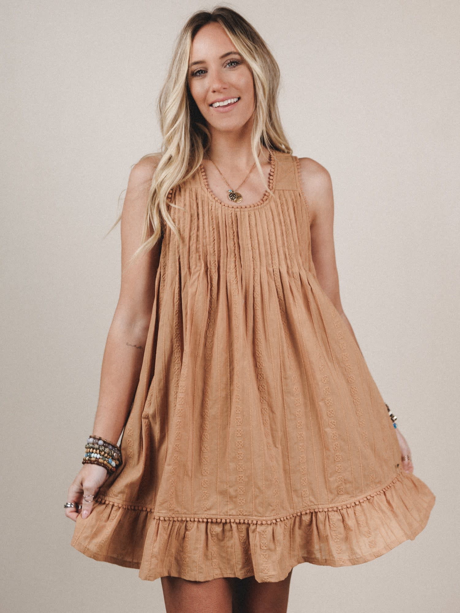 Soft, flowy, and made to twirl—our Blossom Dress is the carefree mini every boho babe needs in her warm-weather rotation. With sweet embroidered details and a dreamy caramel hue, this breezy silhouette brings an effortlessly feminine feel to any moment.
