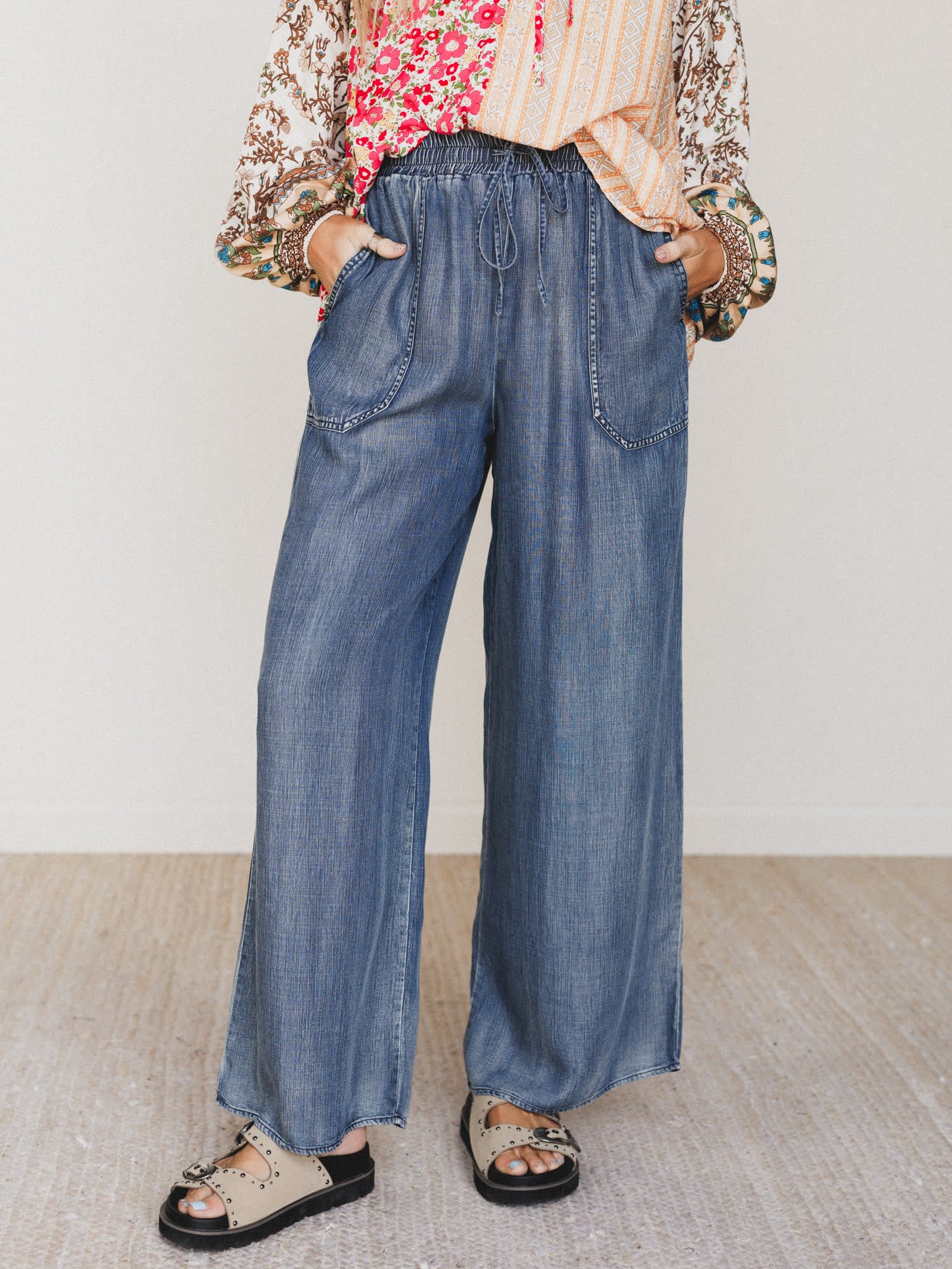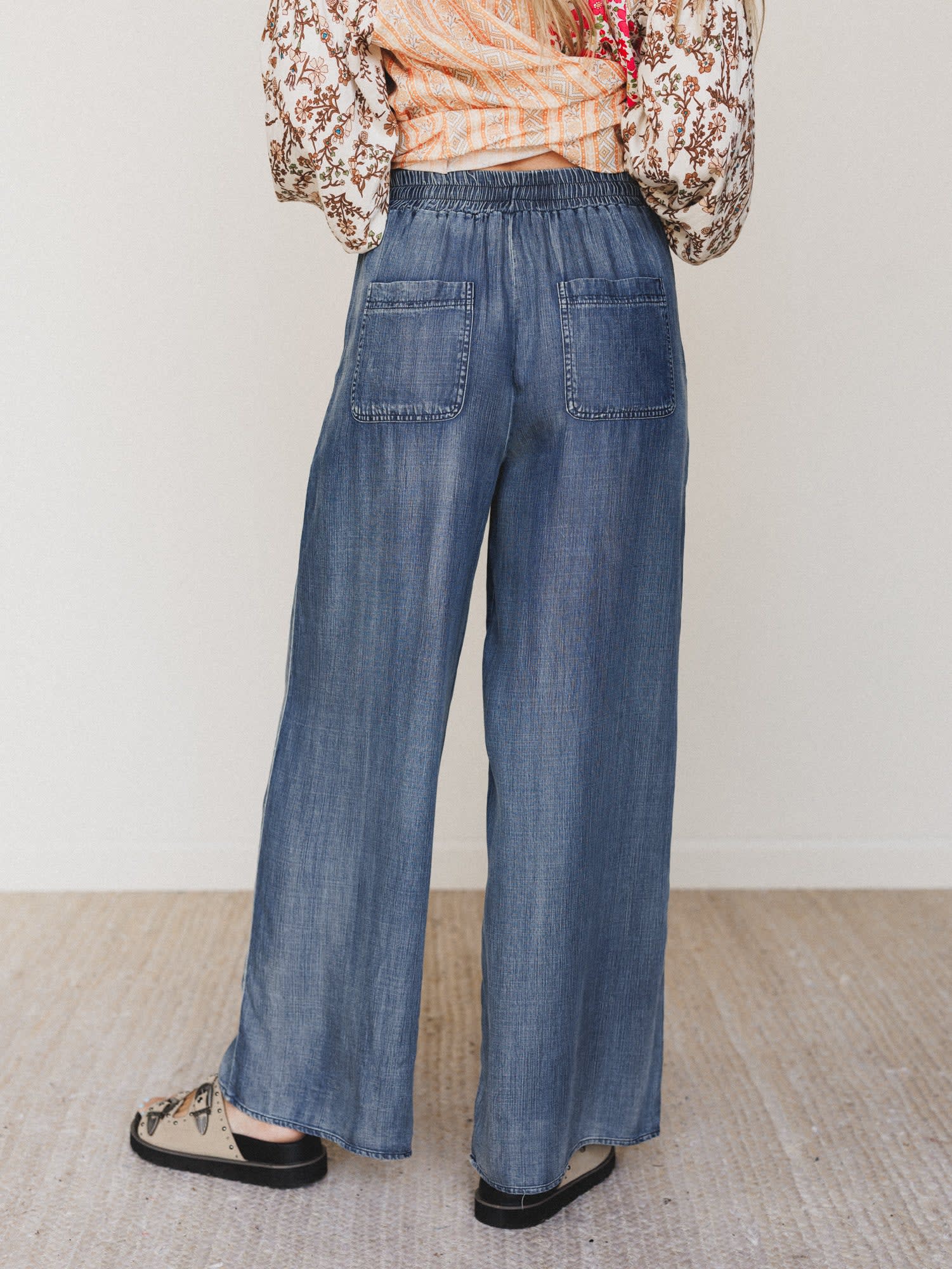 • Lightweight wide-leg pants with an easy, comfortable waistband and laid-back drape