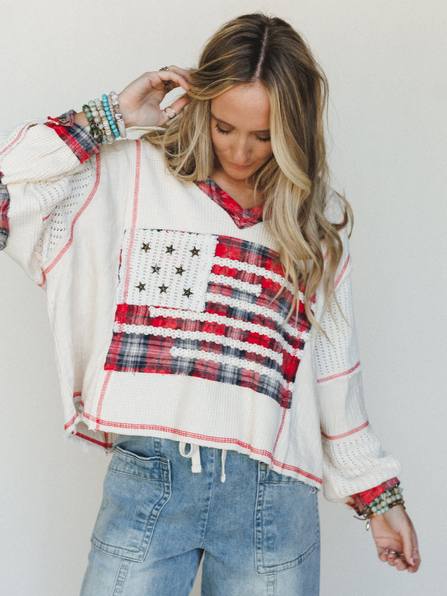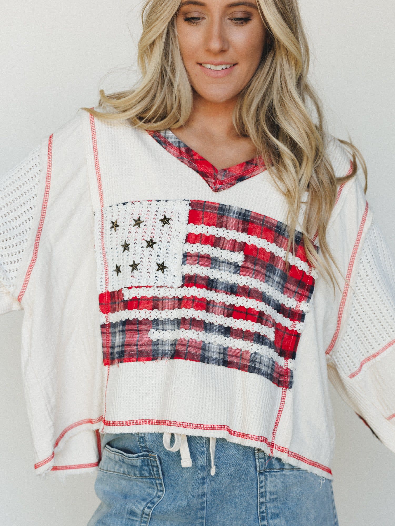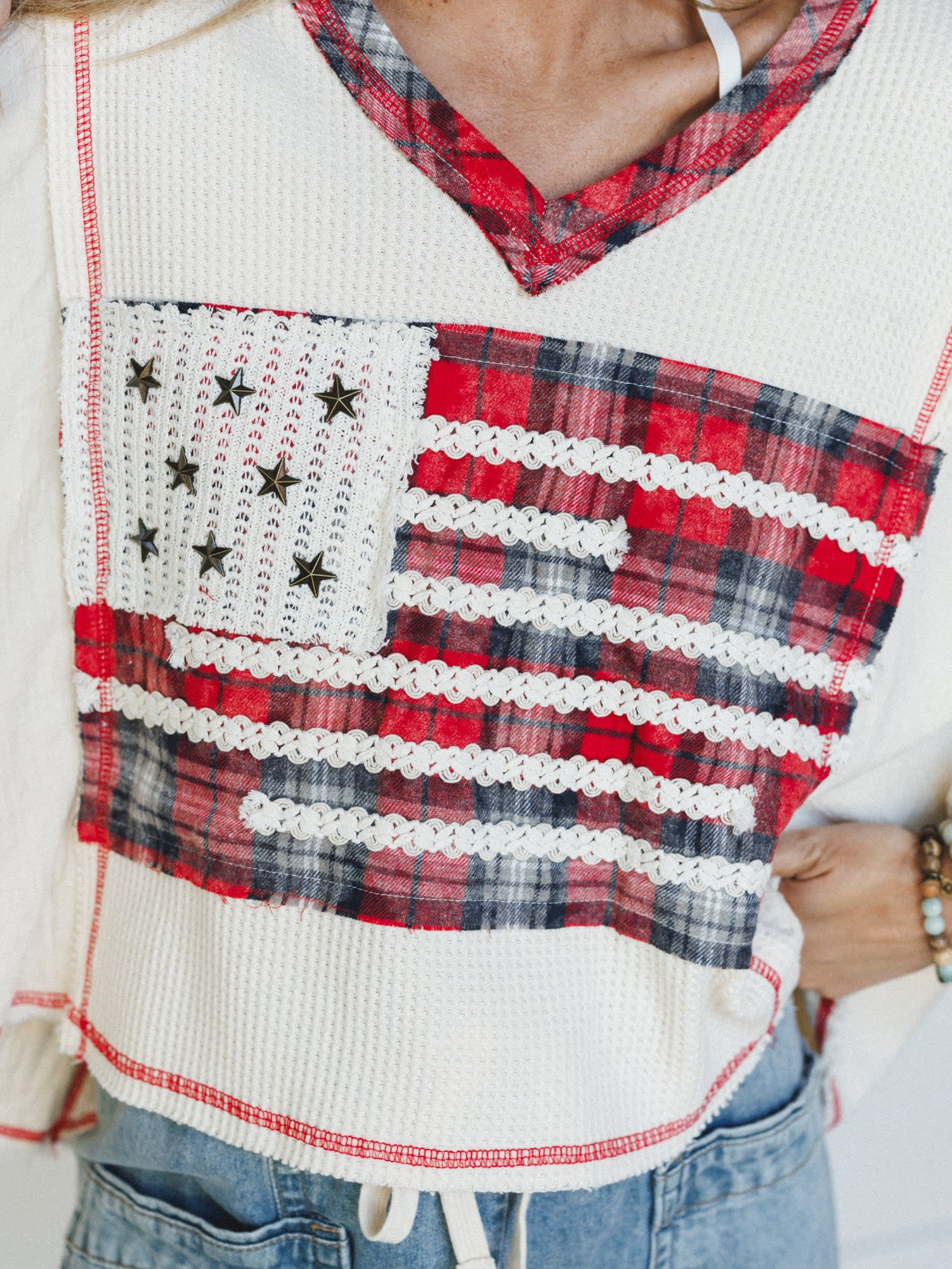 This boho top brings together comfort and patriotic style in one perfectly imperfect package.