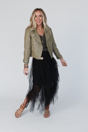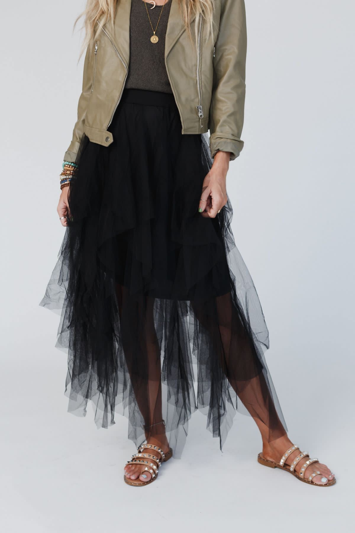 Pretty tiers of soft tulle flatter this Boho Ballerina Skirt in a romantic cascade of sugar plum fun. This skirt has a stretchy pull-on waist and partial lining to the knee with a peek-through handkerchief hemline in a trendy midi-length.