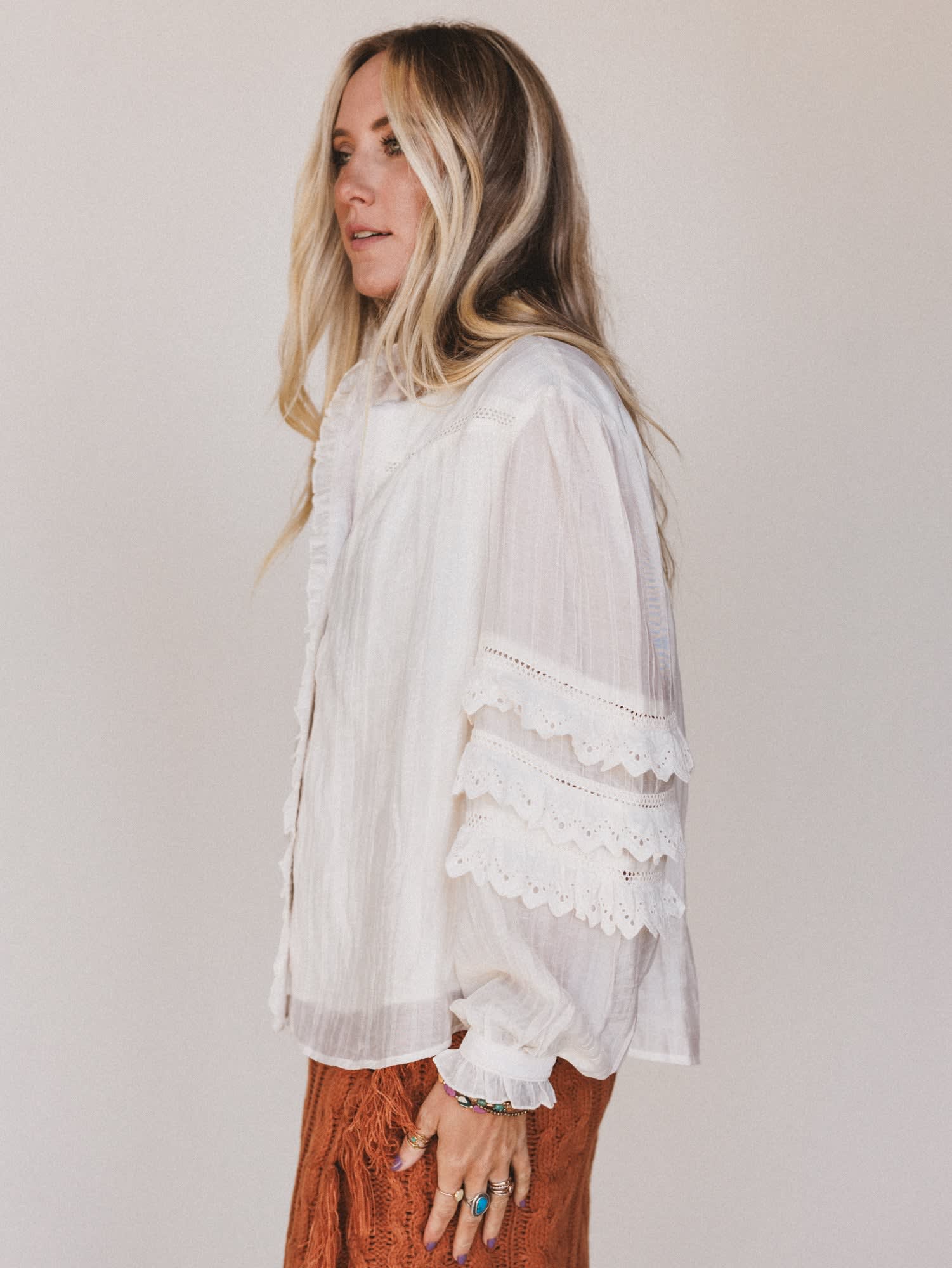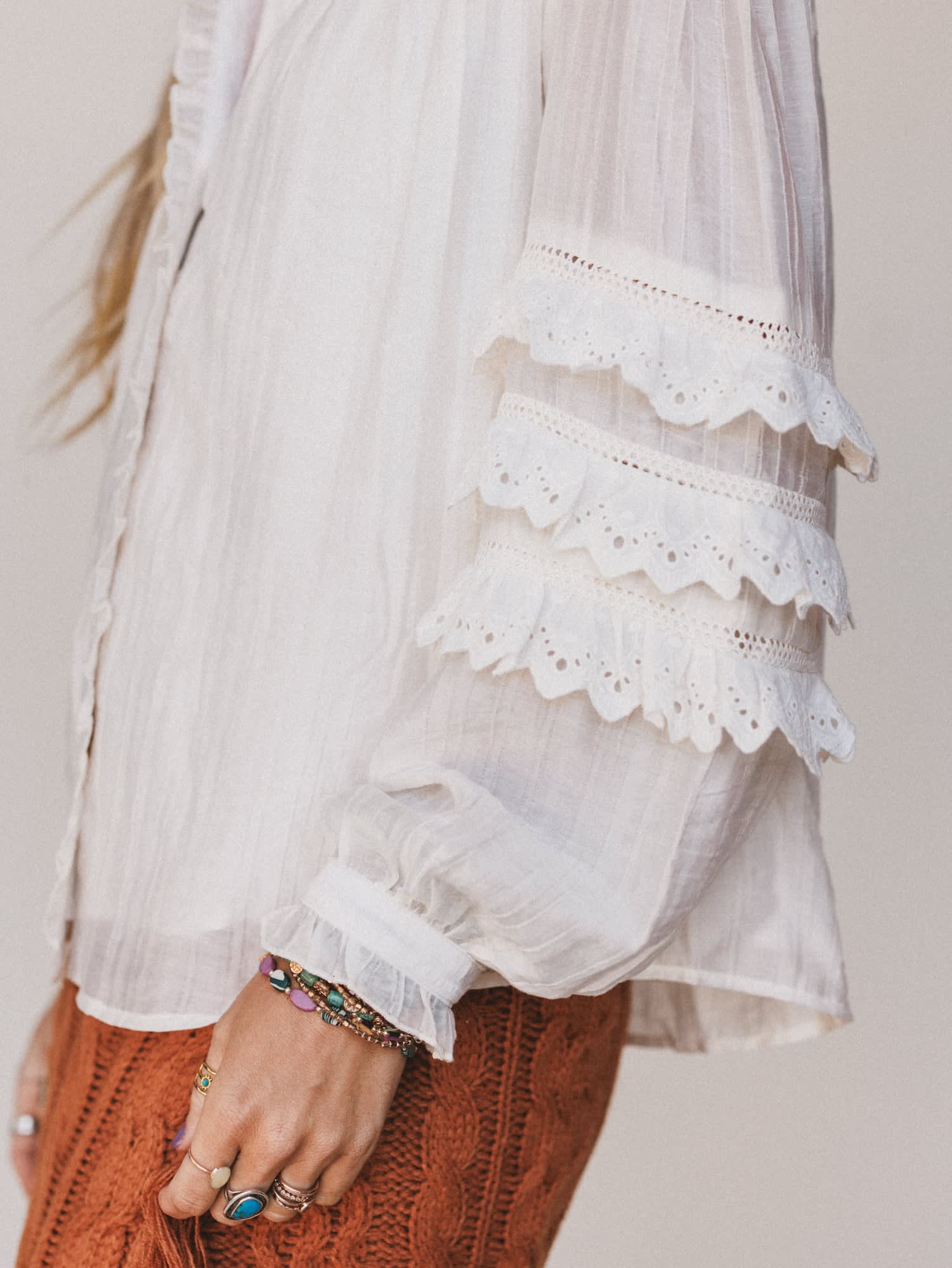 Effortlessly feminine and endlessly versatile, the Boho Romance Blouse is your new go-to for everything from brunch dates to breezy market strolls. With its dreamy details and lightweight feel, this top pairs beautifully with everything from flared jeans to flowy skirts.