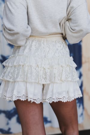 - Pair these lace ruffled shorts with a graphic tee and booties for a cute summer look.