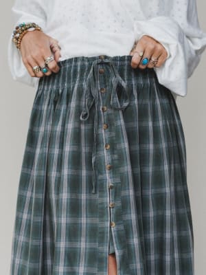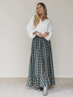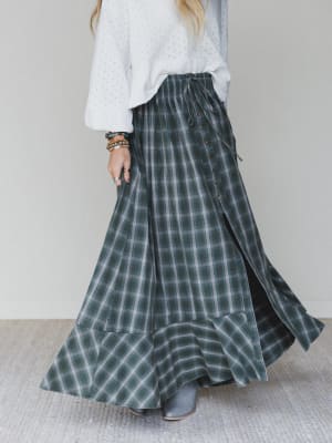 This one’s for twirling through autumn leaves and slow Sundays under the sky. The Bonfire Bloom Plaid Skirt brings prairie girl magic to your everyday wardrobe with rich earthy tones and flowy movement in every step.