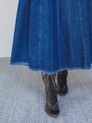 - Full-length, A-line silhouette with raw hem for a laid-back finish