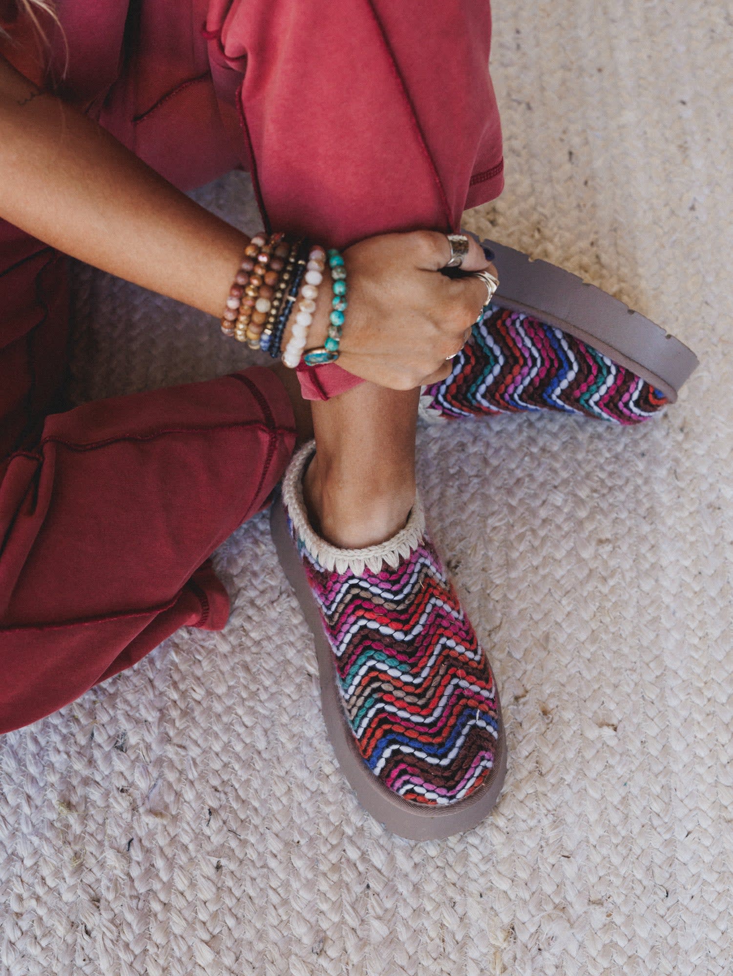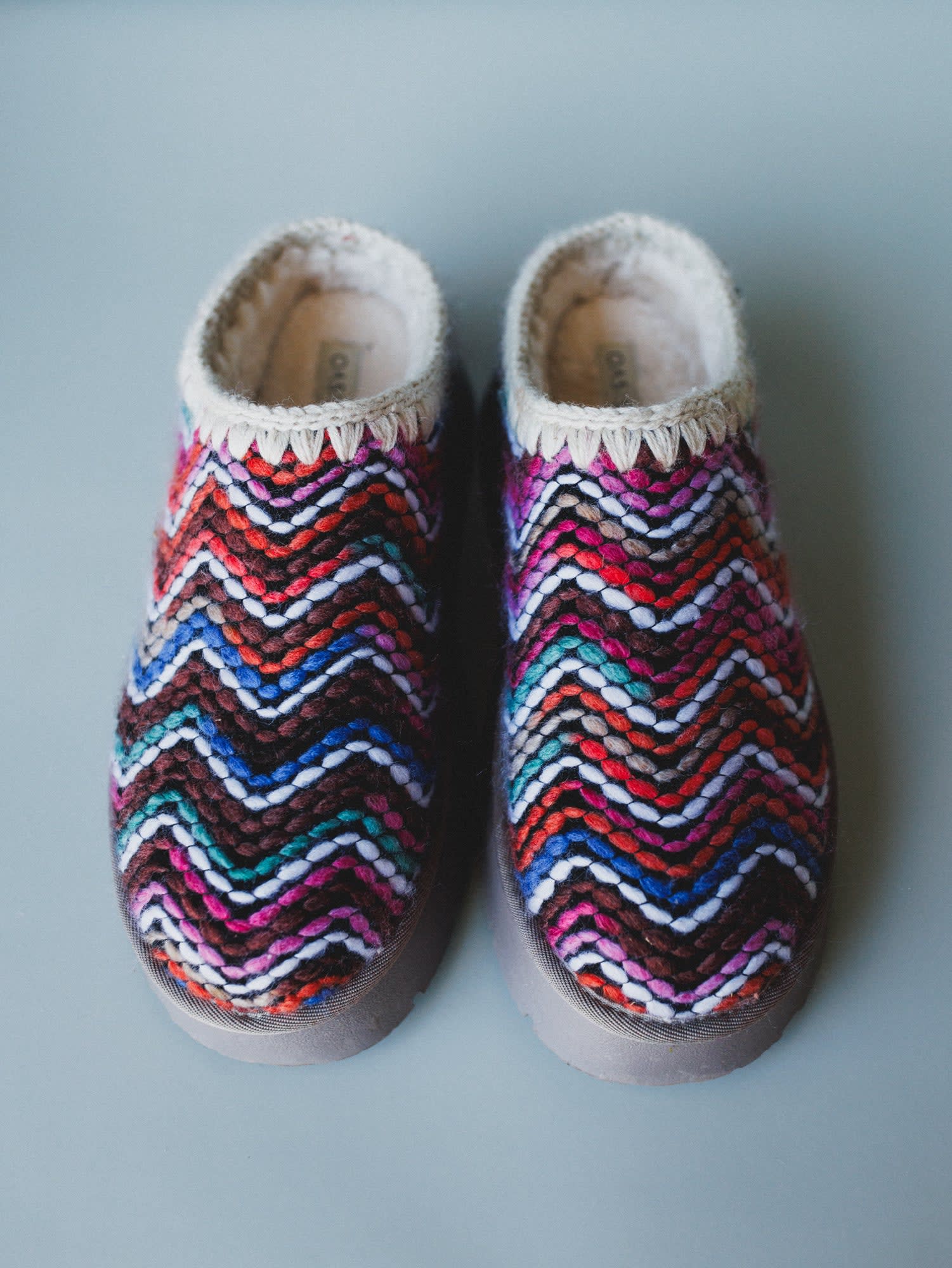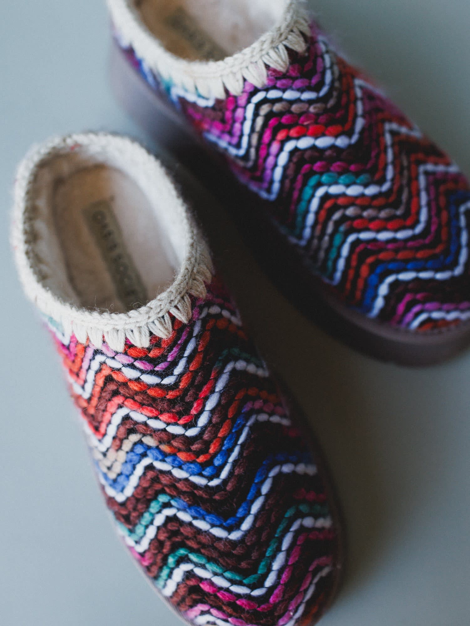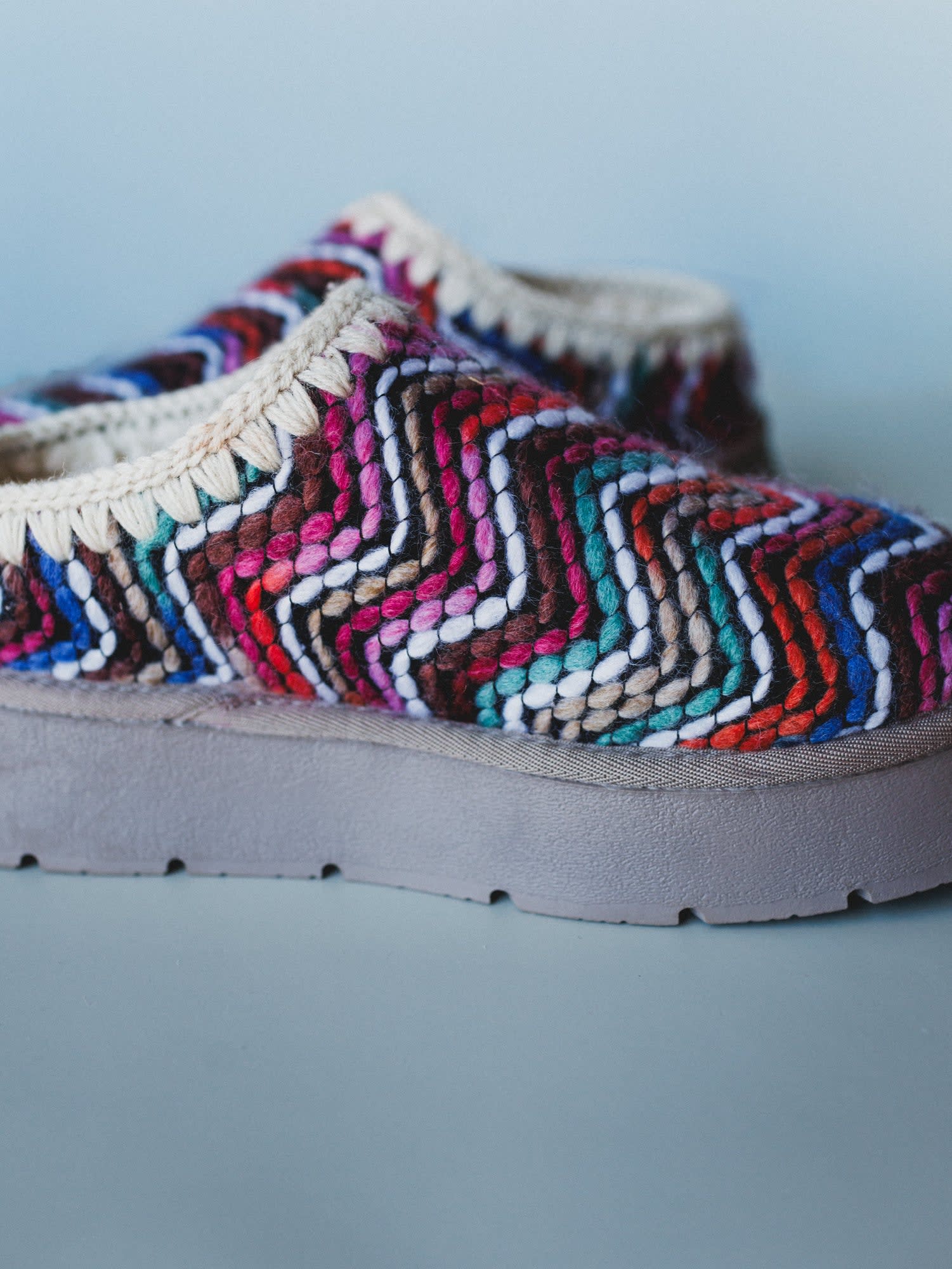 Step into color and comfort with these playful woven mules. The Brandi slip-ons are the perfect mix of cozy vibes and boho flair—ideal for lounging at home or brightening up your everyday errands.