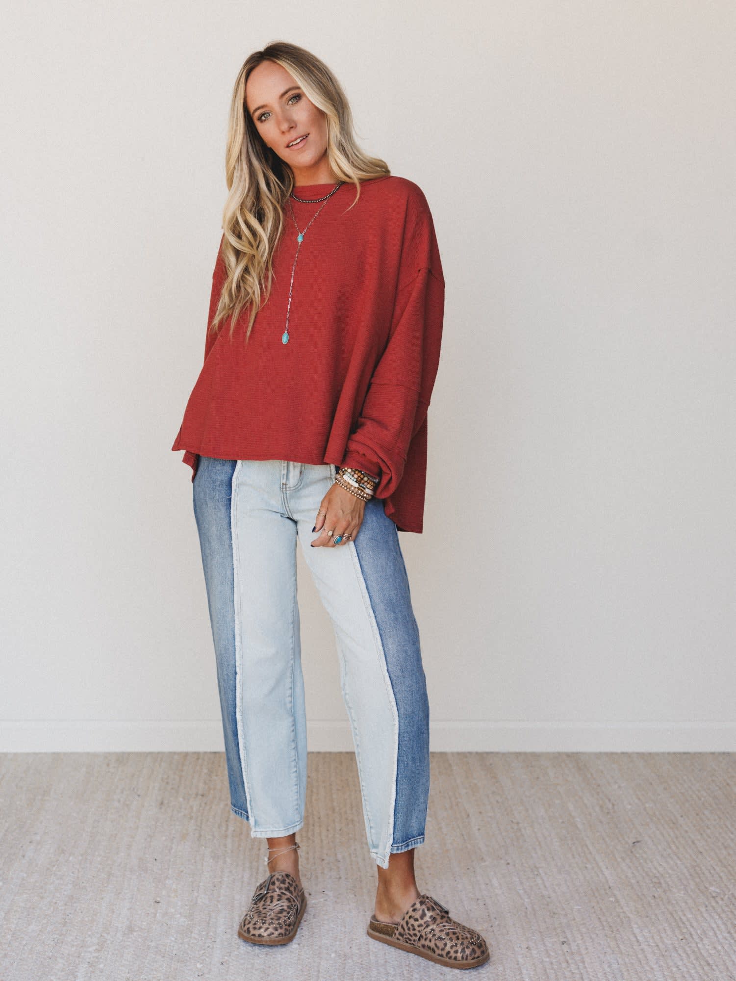• Cropped length hits right at the ankle—perfect with boots or clogs