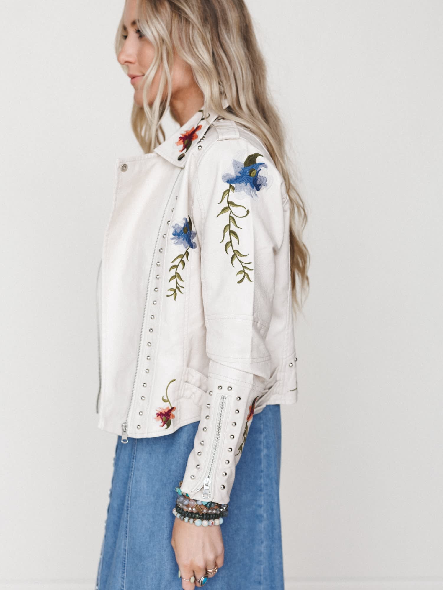 Equal parts edgy and feminine, this statement jacket takes your everyday denim and boots to the next level—perfect for outdoor concerts, dinner dates, or downtown wanderings.