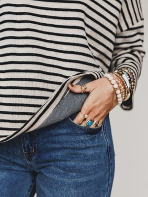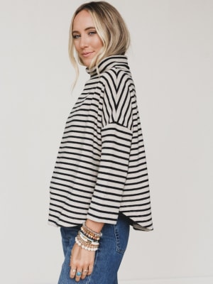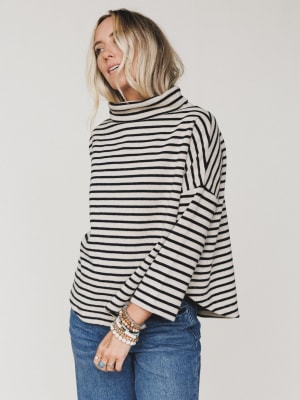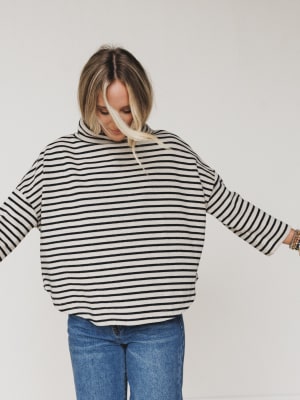 Equal parts classic and cozy, the Brunch Club Striped Top is made for easy Sundays and chilly morning coffee runs. With a soft drape and chic funnel neck, it’s the kind of staple that goes with just about everything.