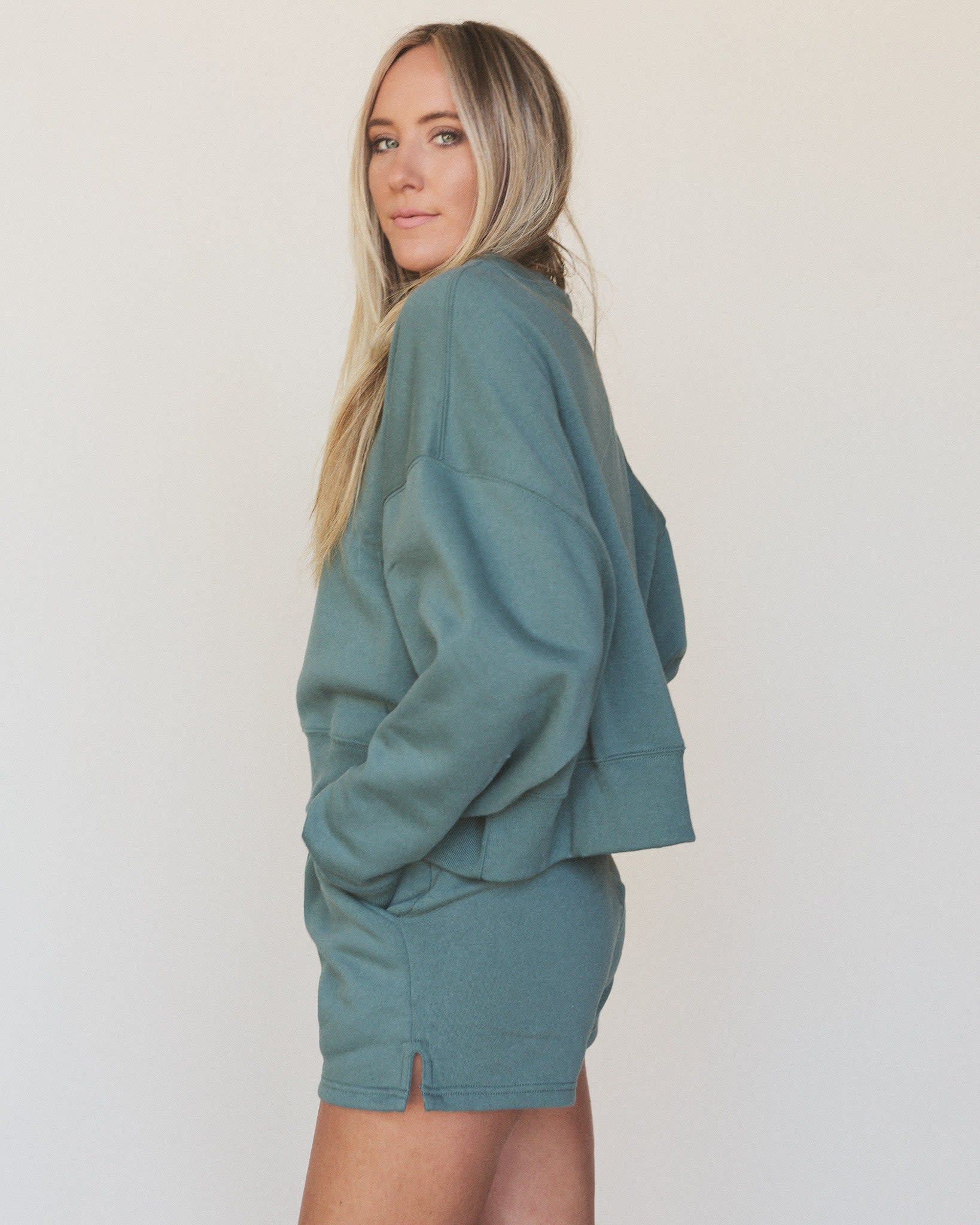 • By The Fire Sweat Set: Buttery-soft fleece in an olive hue, with a relaxed pullover and matching shorts for effortless off-duty vibes
