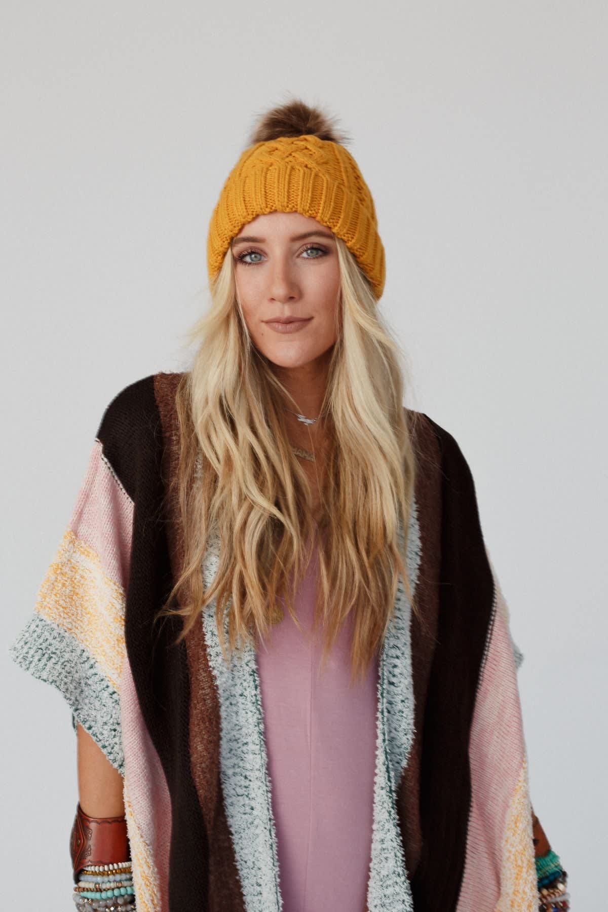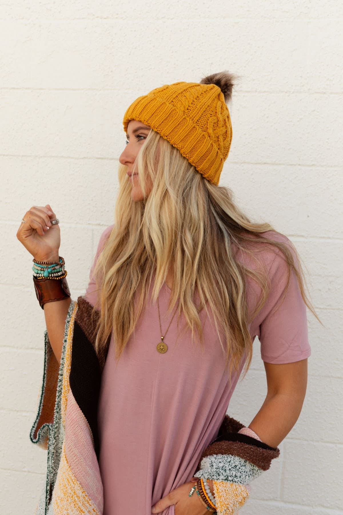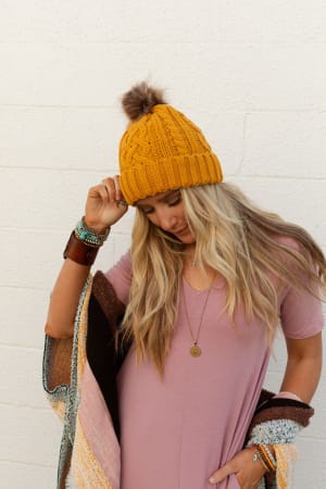 So cool and classic the Cable Knit Faux Fur Pom Beanie is the perfect addition to all your outfits, plus it doubles up on style and cuteness!