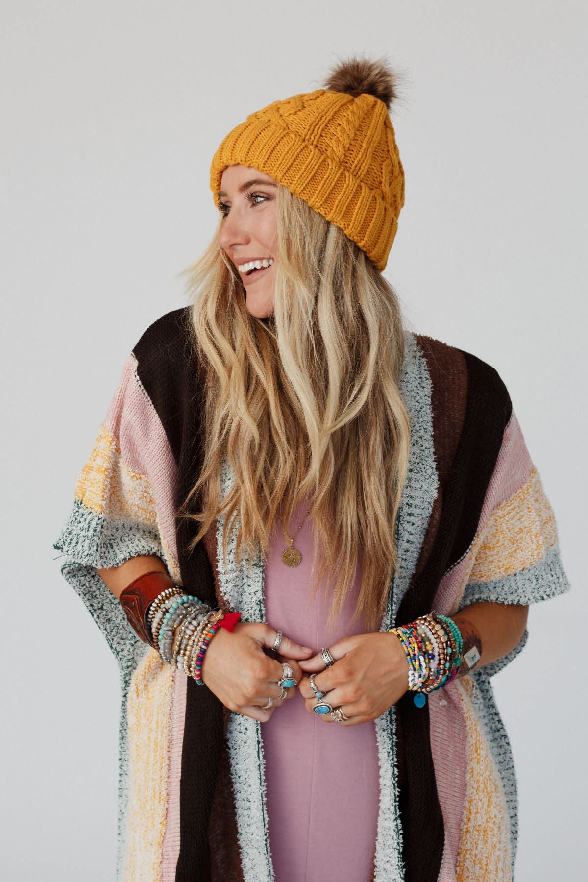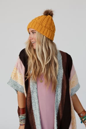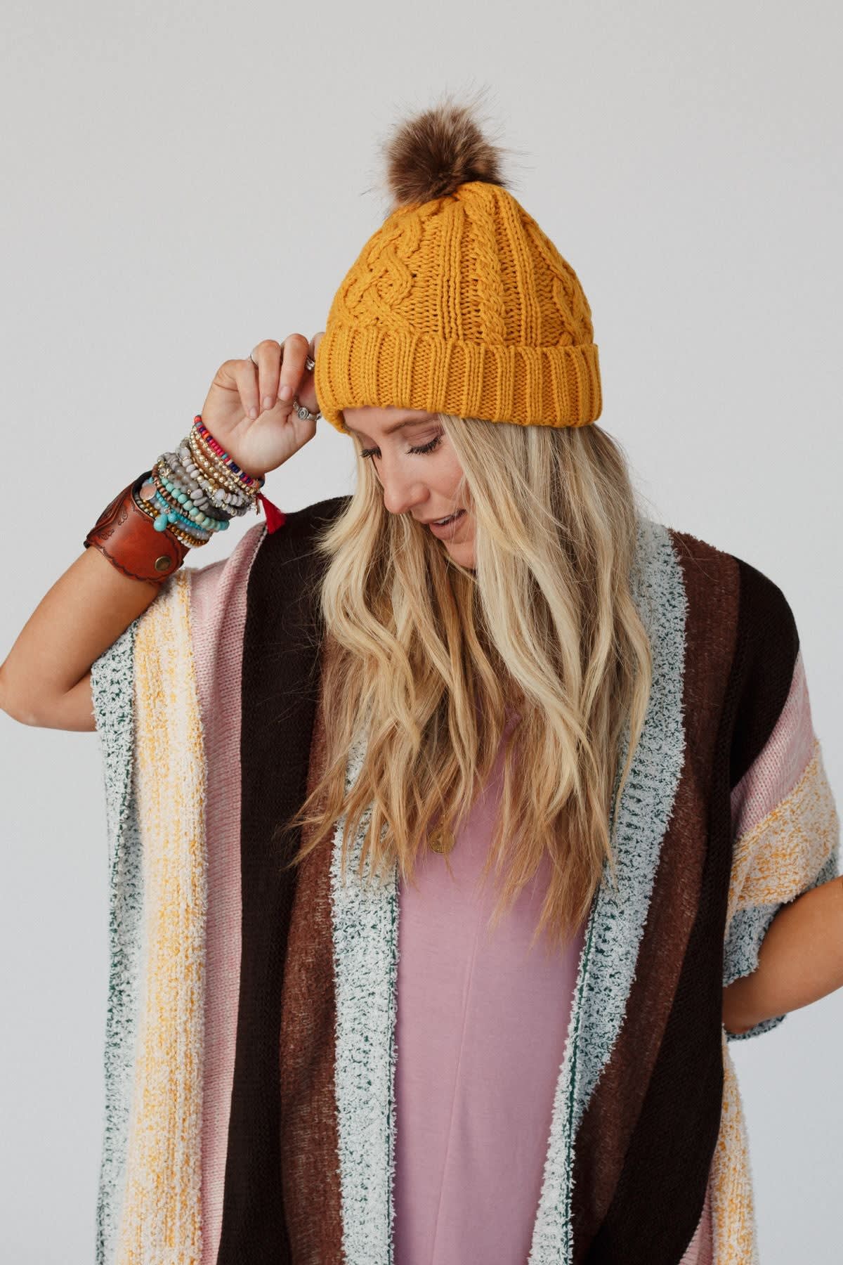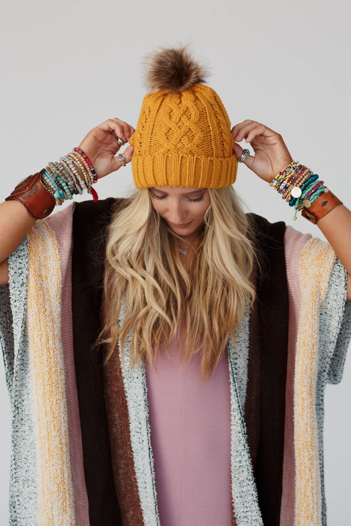 So cool and classic the Cable Knit Faux Fur Pom Beanie is the perfect addition to all your outfits, plus it doubles up on style and cuteness!