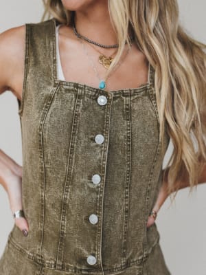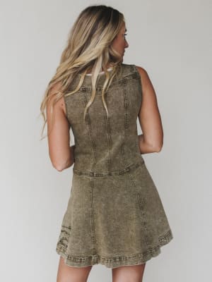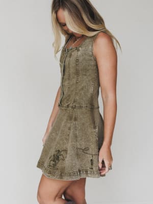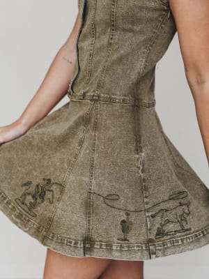 Saddle up, darlin’. The Cactus Walk Embroidered Mini Dress is a desert daydream come true—crafted in a soft, washed olive denim with playful Western embroidery that’s ready to ride.