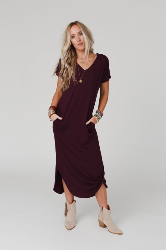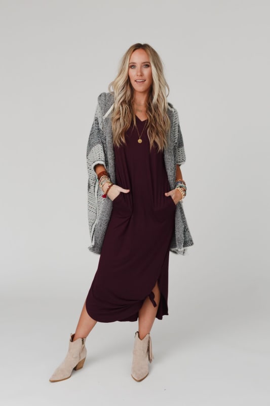 Can't go wrong with our Call It Comfort- this maxi dress is a closet staple! It features a relaxed fit, flattering neckline and pockets. Style with your favorite accessories for a casual boho look.