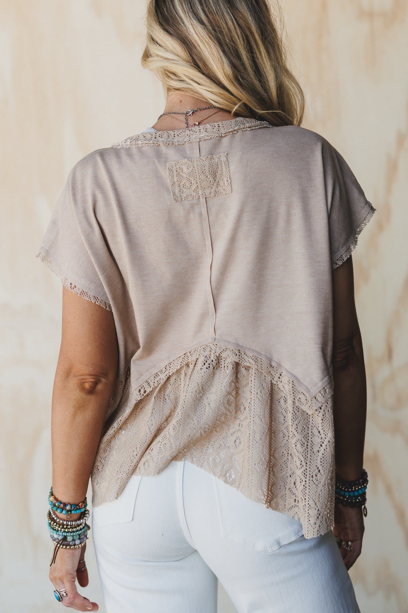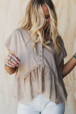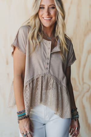 This lacey babydoll top looks amazing with bell bottom jeans and ankle boots.