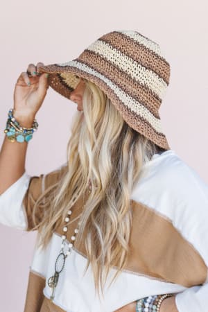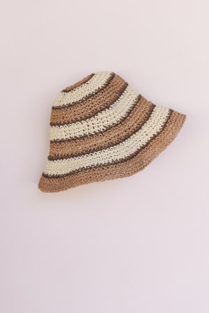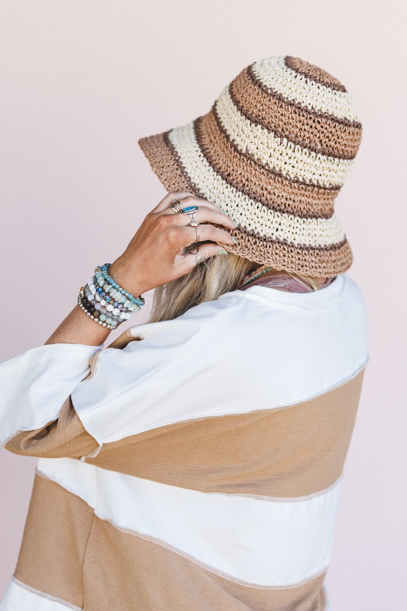 Channel a chill 90s vibe while keeping it boho with this crochet bucket hat in neutral tones.