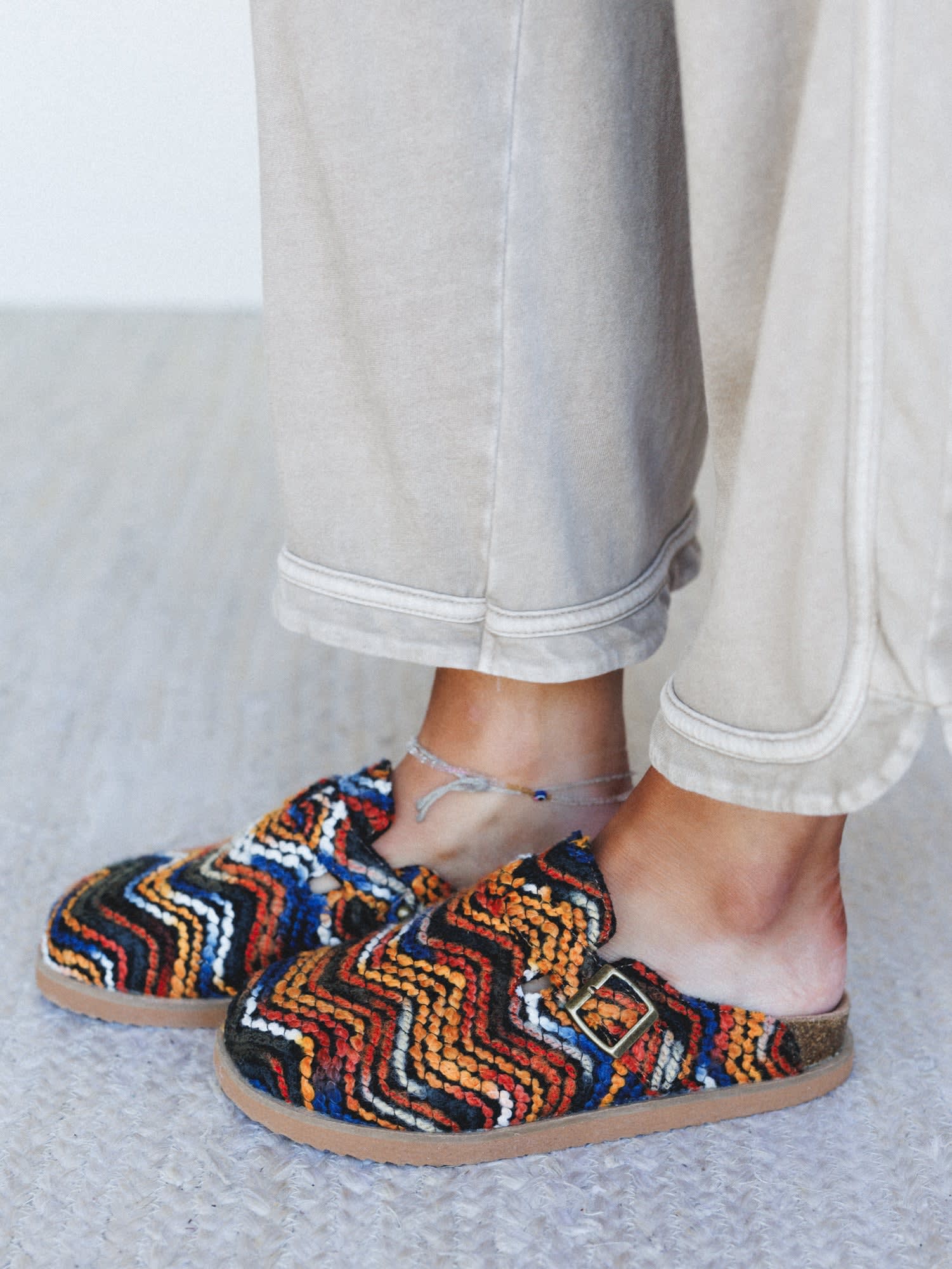 Nothing says effortless like slipping into a bold pair of mules when you’re pulling together a casual outfit or looking for what shoes to wear with denim and dresses. The woven orange, blue, and black pattern brings that statement-making, boho feel to even your simplest looks.