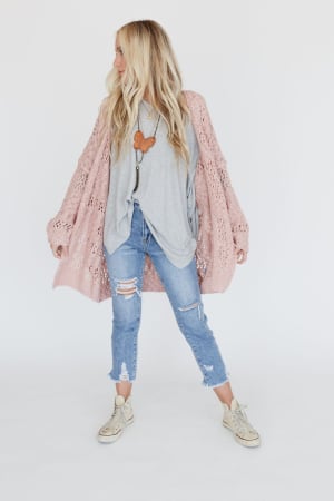 It's all in the details with our Cara cardigan- this oversized sweater features a beautiful open knit pattern. It's the perfect transitional piece to layer over your closet staples.