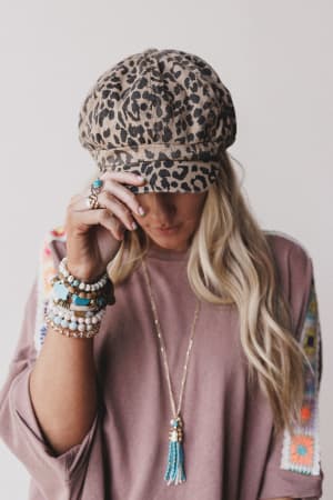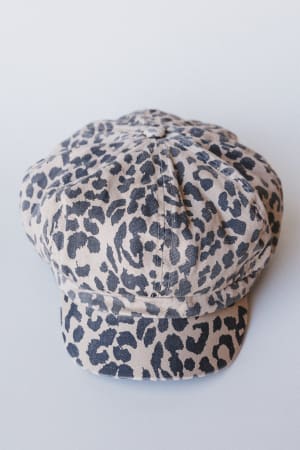 Get ready to turn all the heads with this bold leopard print pageboy hat.