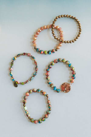 • Natural stone, glass beads, plastic sequence, brass, gold plated brass, zinc