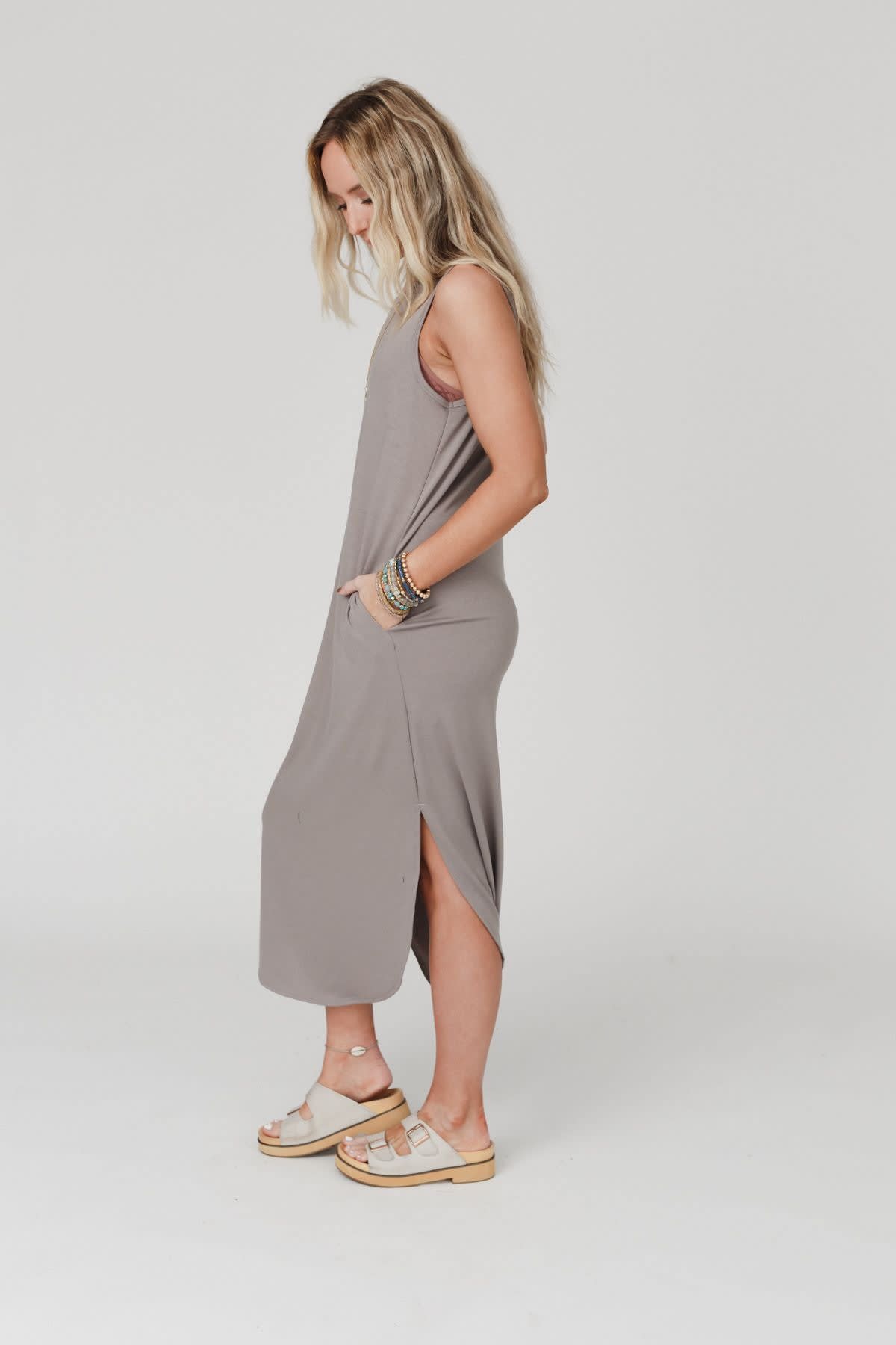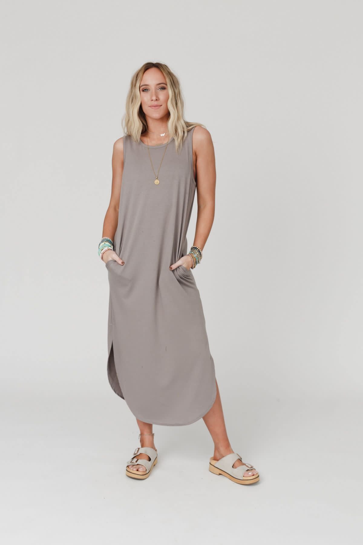 With a boho and laid back vibe, the Cassie Sleeveless Pocket Maxi Dress is the ultimate flattering, go-to dress!