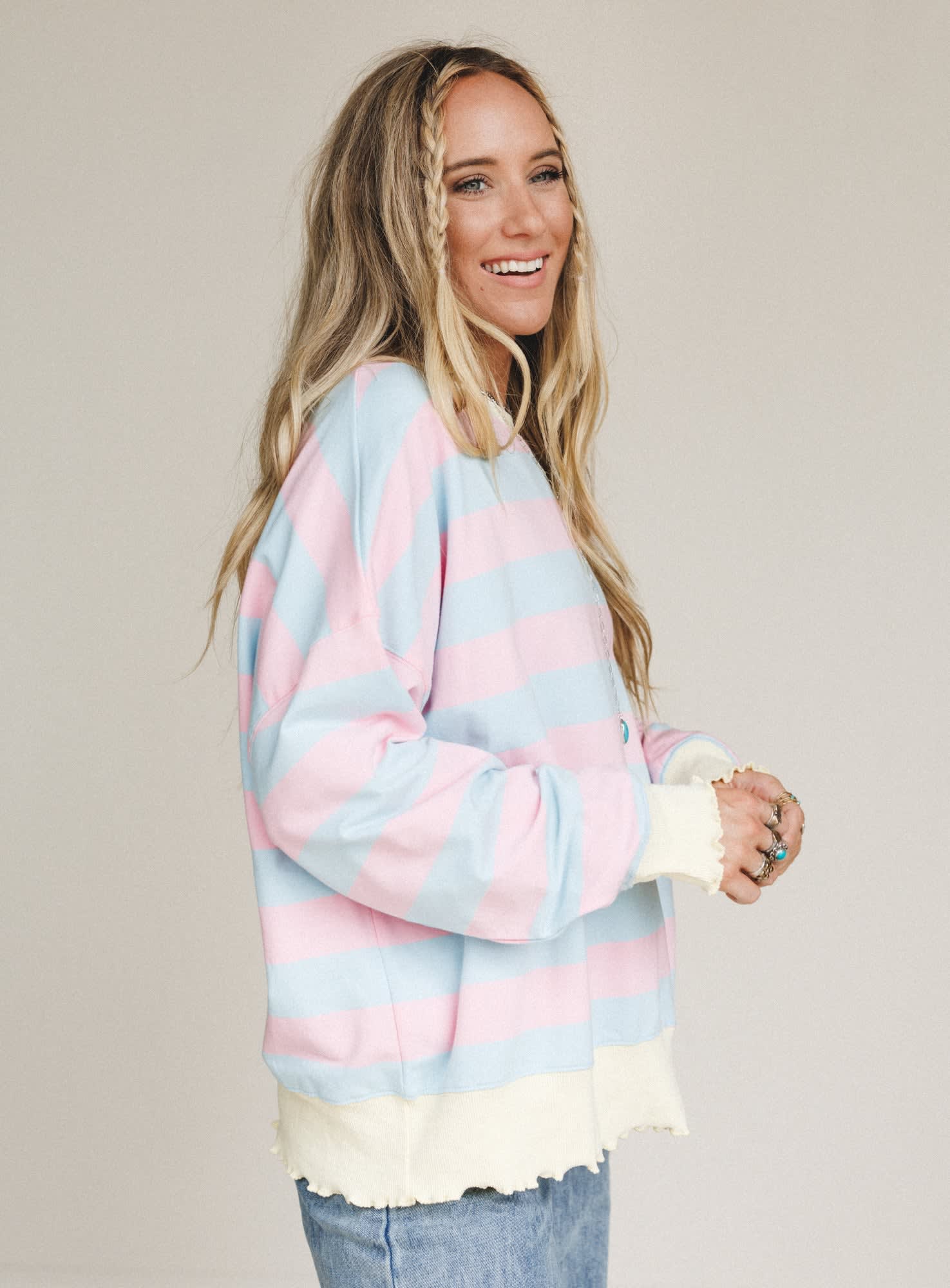 Bright, breezy, and unapologetically fun—The Casual Lines Striped Top brings a pop of pastel charm to your everyday lineup. With soft hues and a relaxed fit, this top is made for chill mornings and carefree afternoons.