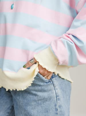 - Creamy ribbed hem and cuffs with lettuce edge detailing