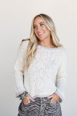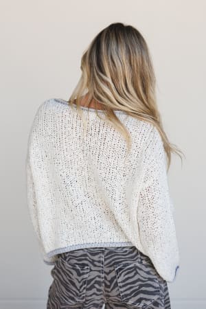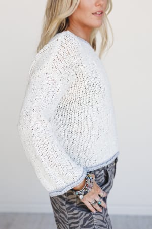 Cozy up in carefree comfort. The Catching Dreams Pullover is a breathable open-knit sweater in a creamy ivory hue, finished with rolled cuffs and subtle contrast trim for a relaxed, lived-in feel.