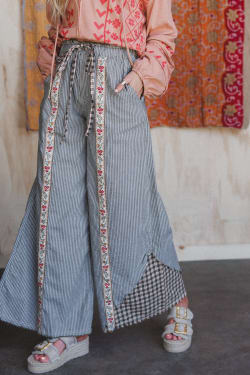 - Floral & plaid trim wide leg pants