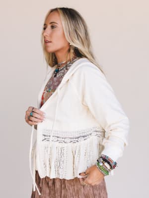 Add a little romance to your layers with the Charmed Heart Lace Hoodie — a cozy-meets-whimsy dream for those breezy days and magical nights. This isn’t your basic hoodie… it’s a boho love letter in fabric form.