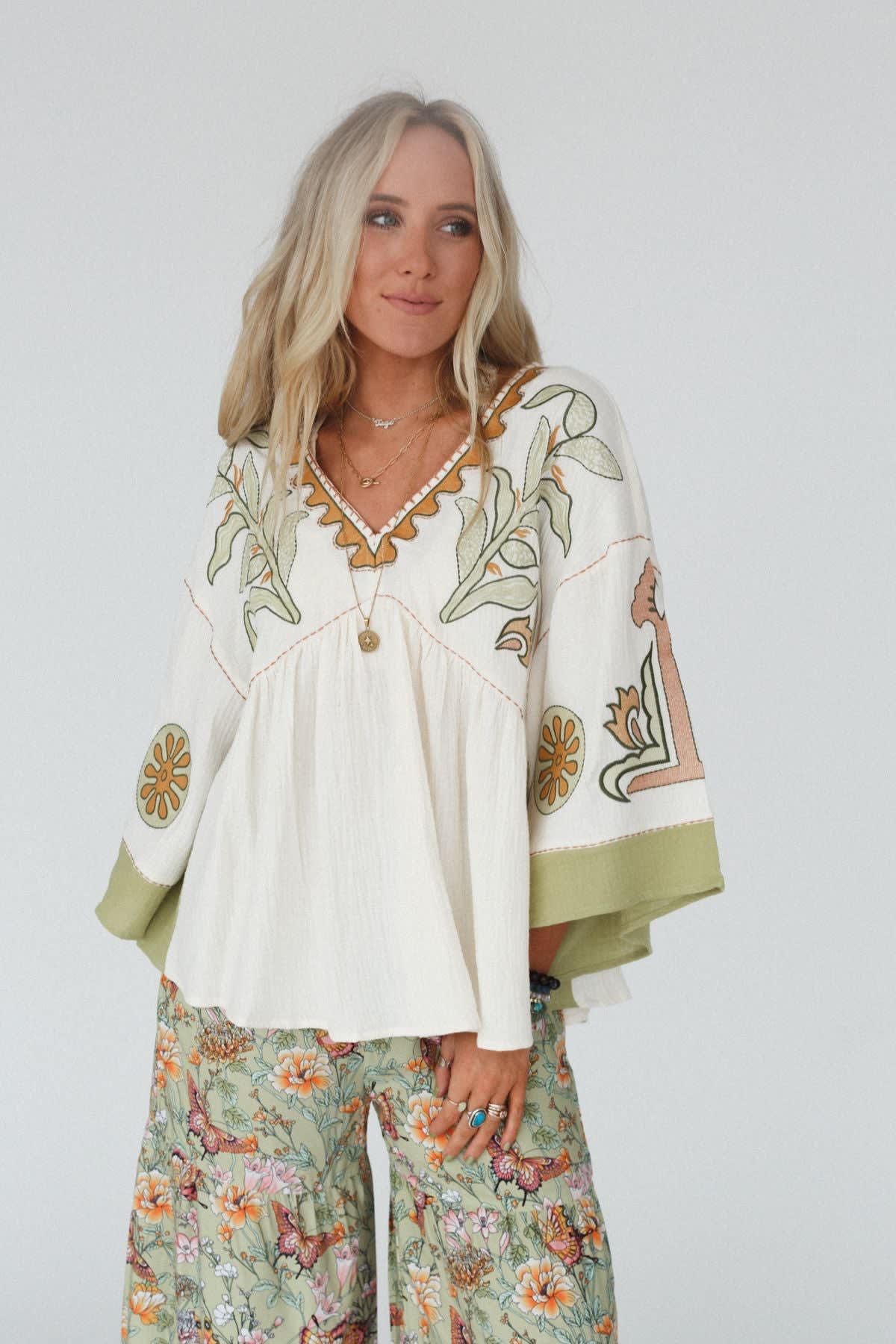 - Unique and intricate floral embroidery for added boho style