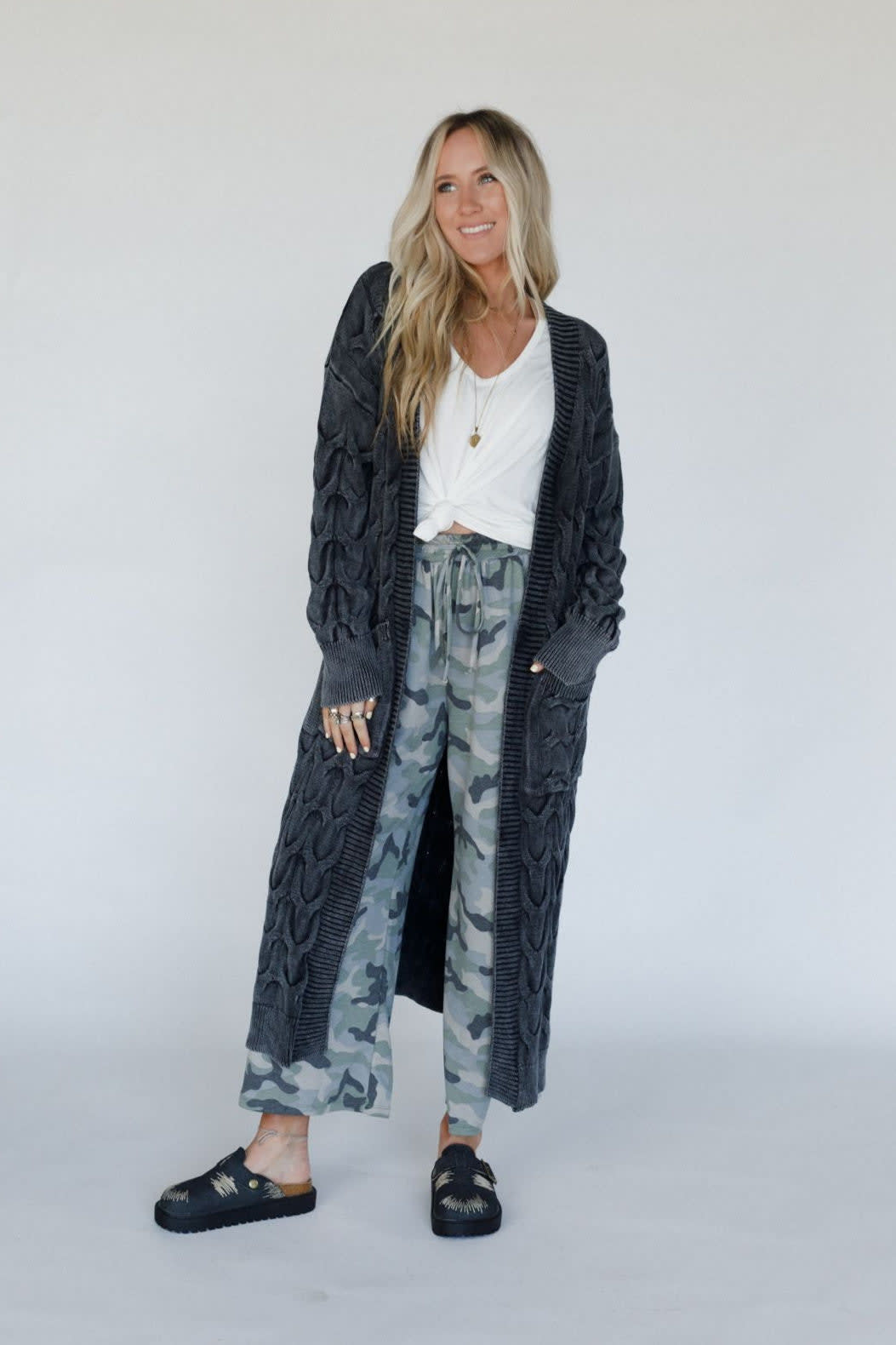 When it comes to affordable bohemian clothing, go with a statement layering piece with this gorgeously long cable knit cardigan. Soft and luxurious, it’ll go with anything in your closet.