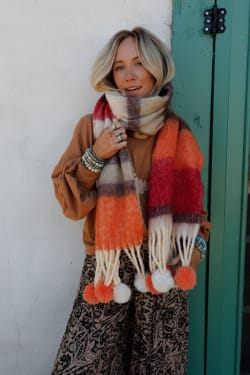The cutest and coziest finishing touch is the Chill Stripe Pom Scarf. The bold colors and playful pom trim make for a timeless touch of boho in your cool weather wardrobe!
