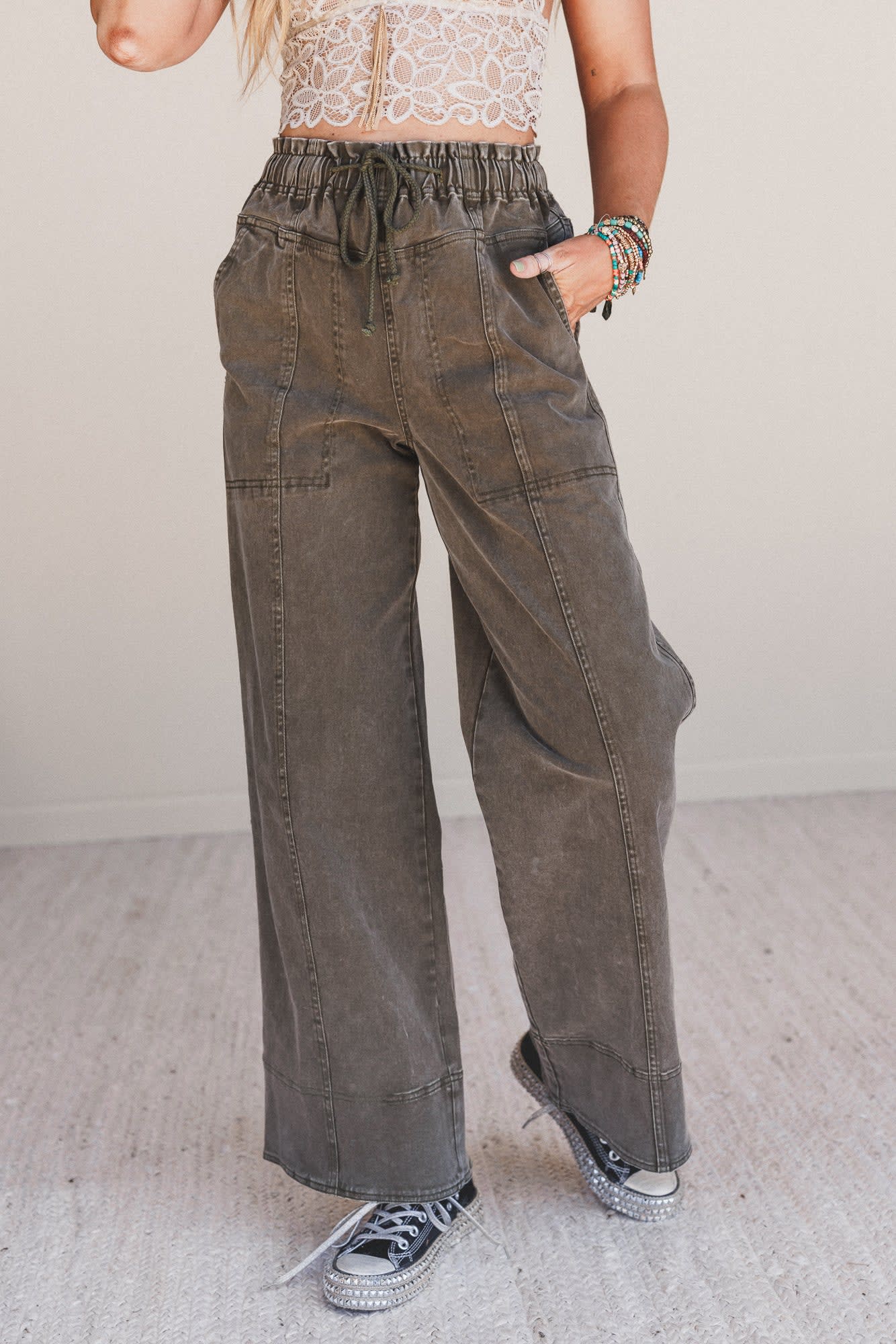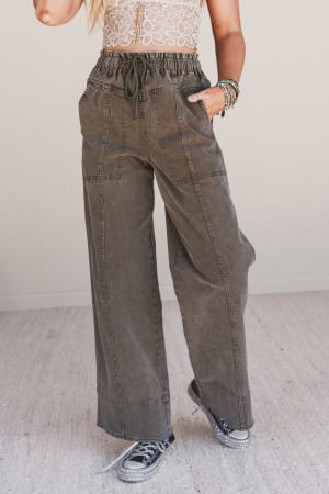 Take the scenic route in the Clean Break Pants. These flowy olive bottoms move with you and match your every adventure.