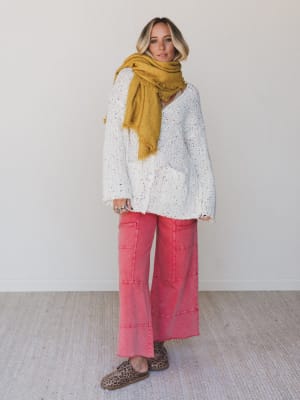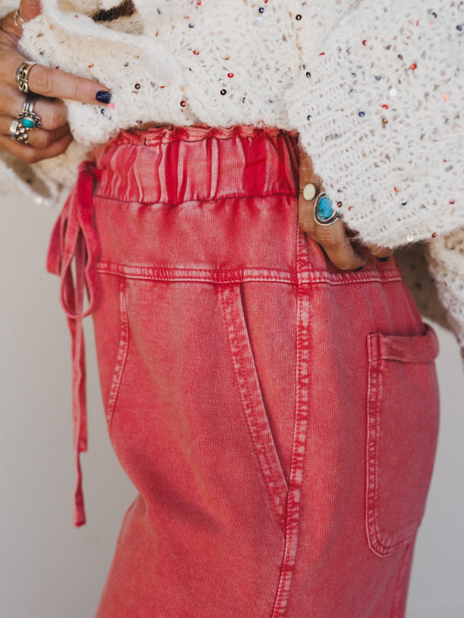 - Lucky One Wide Leg Full Pant – Garment-dyed in the prettiest washed red, these wide-leg pants are soft, breathable, and majorly comfy with a stretchy drawstring waist.