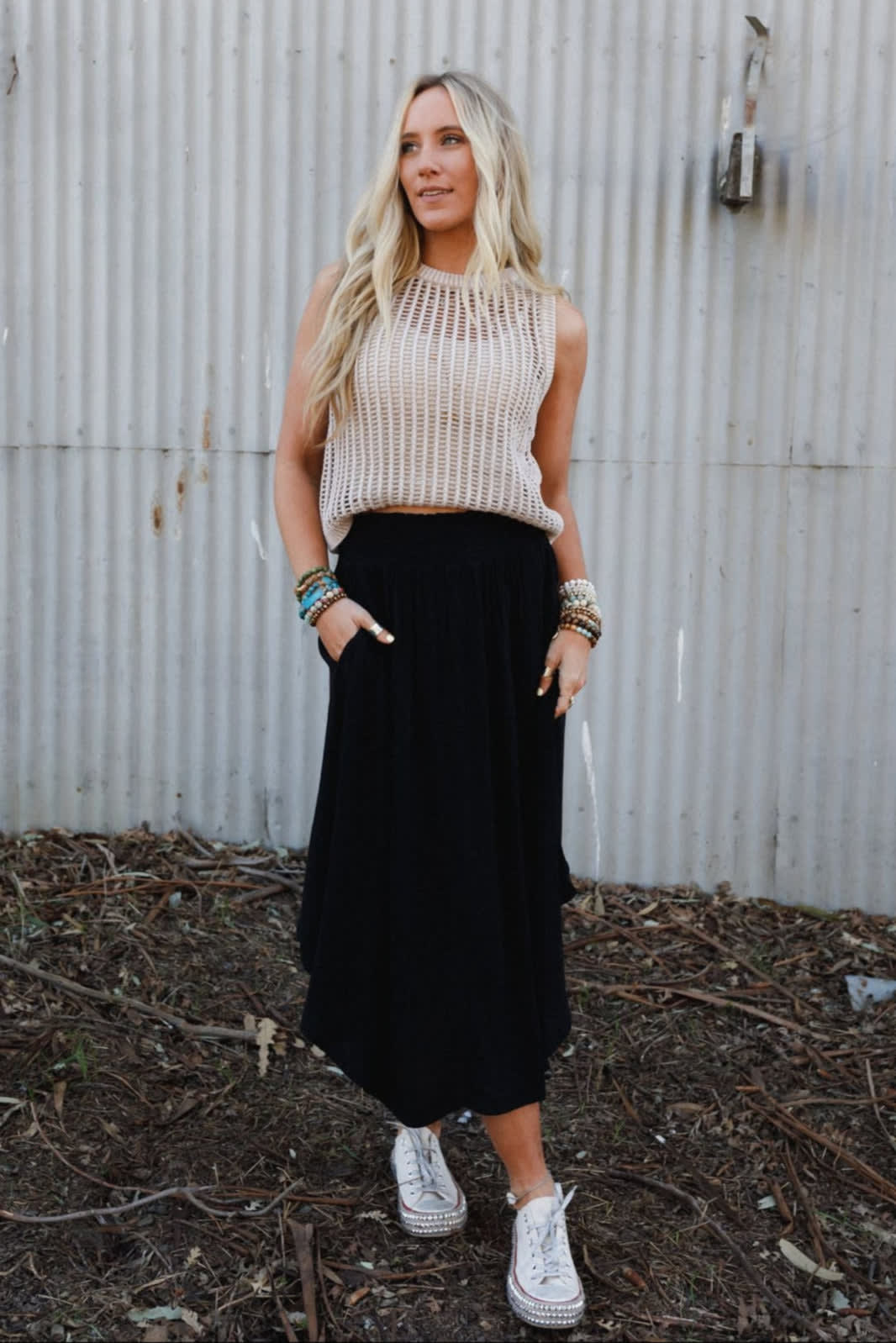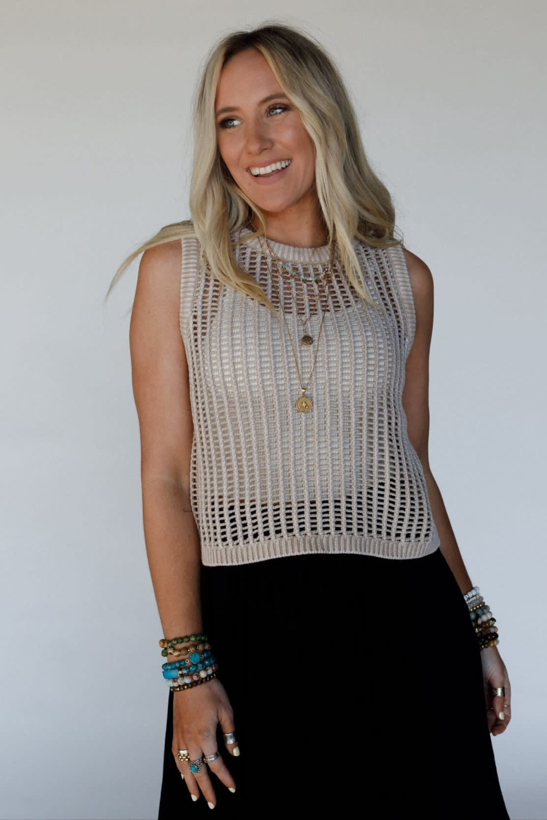 When the sun is out and you want to show a hint of skin, this boho knit tank is key.