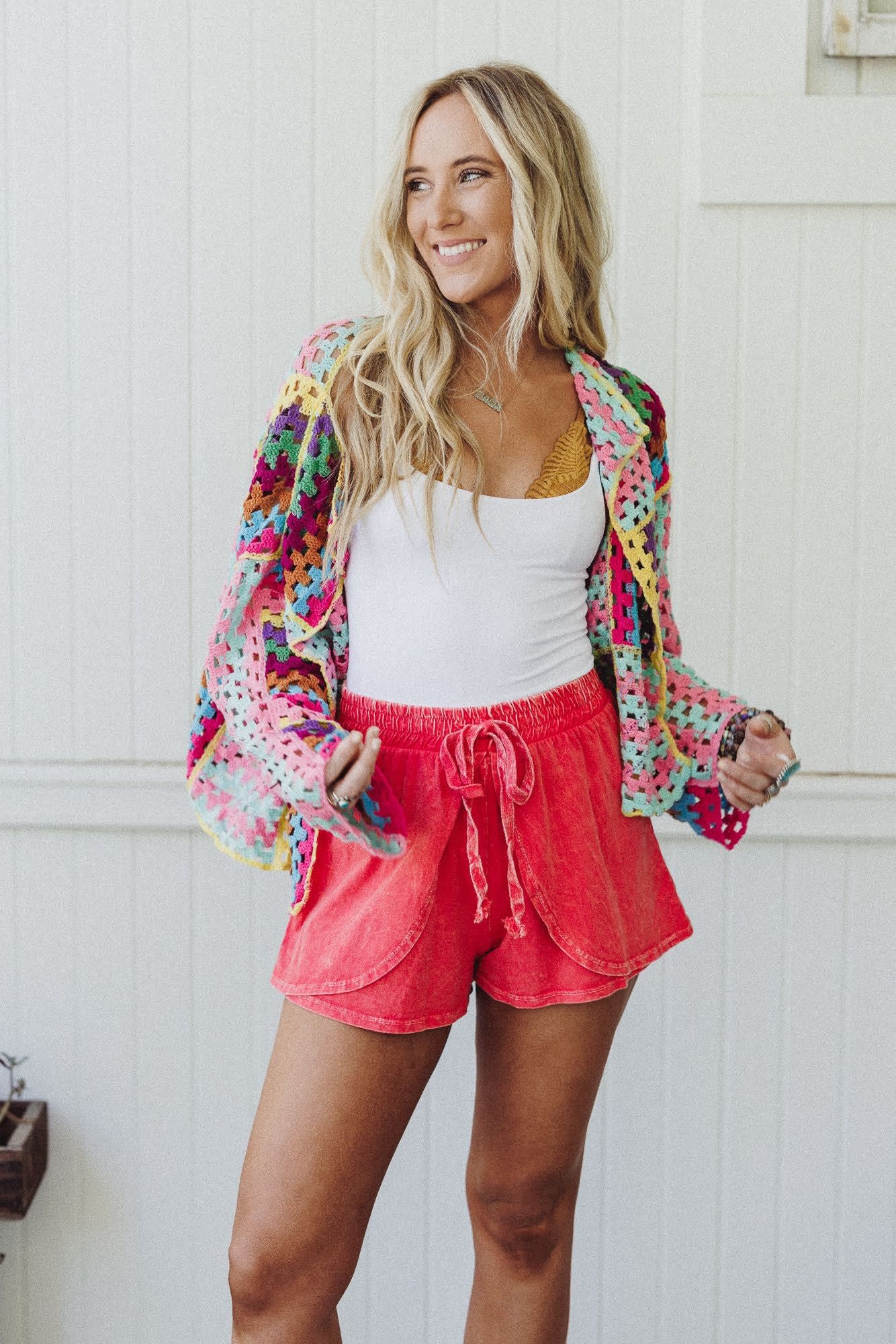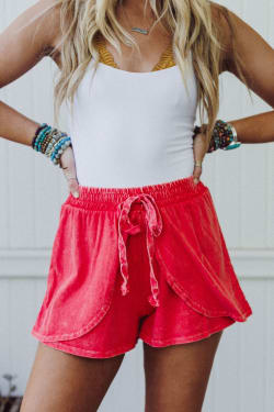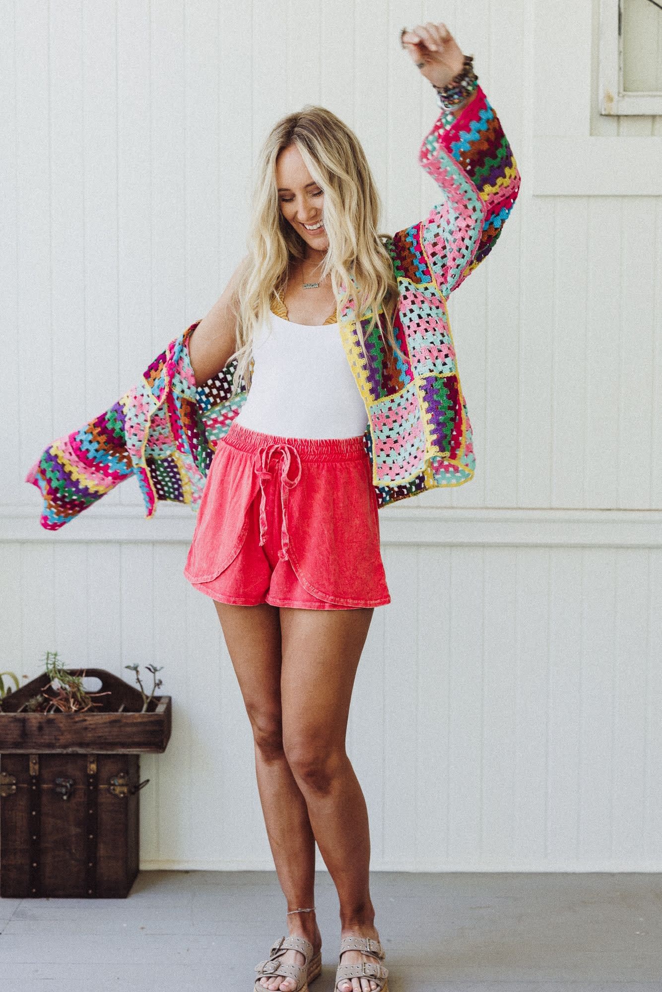 • Petal Drift Shorts: Soft, mineral-washed drawstring shorts in a punchy coral red hue. These lightweight beauties have rounded hems and an easy pull-on fitβ€”basically, summer in a short.