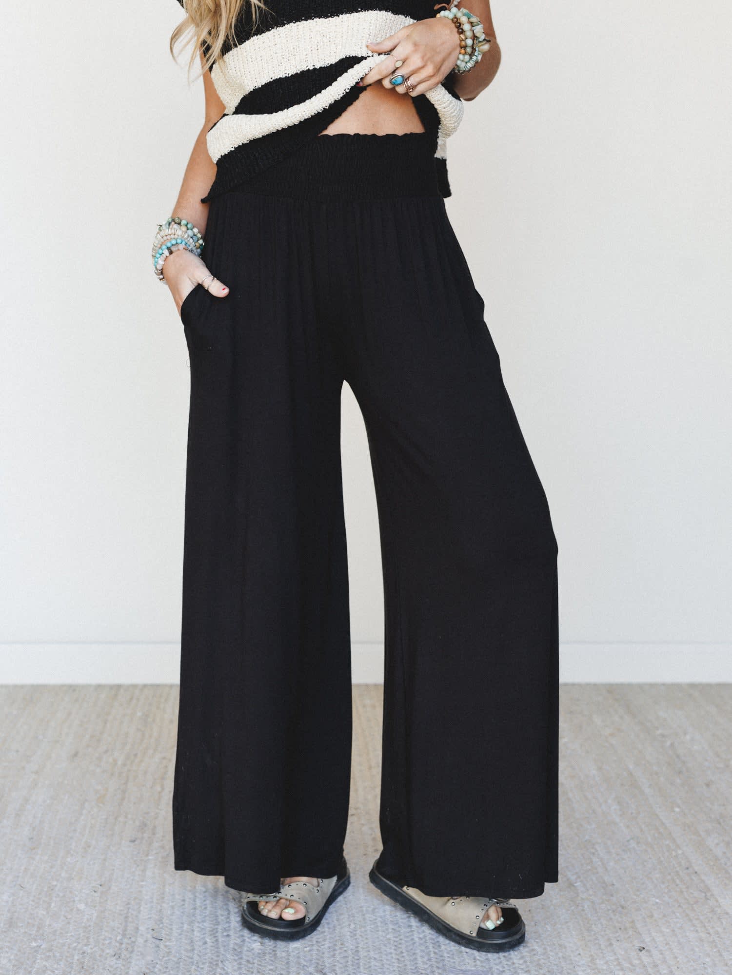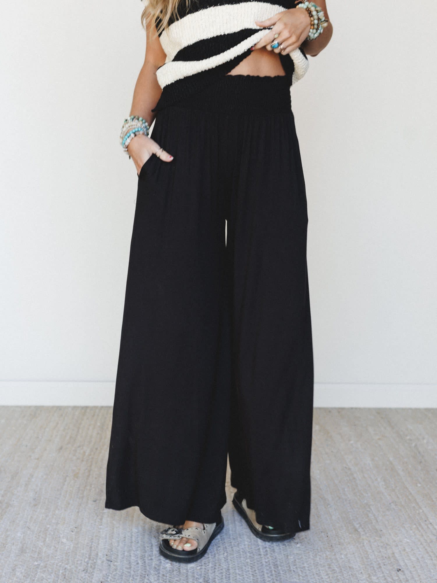 • Ultra-wide leg silhouette creates an effortlessly flowy, bohemian fashion statement that moves beautifully with every step.