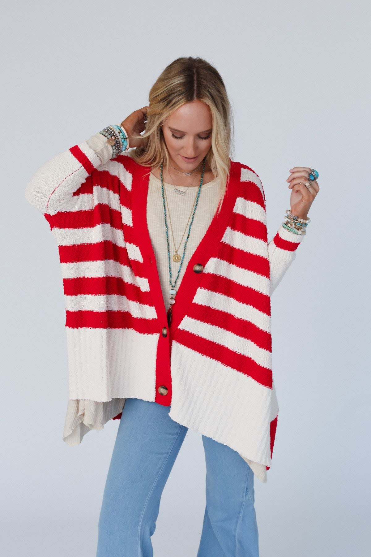 No boho closet is complete without a cozy, cute cardigan and lucky for you, the Great Stripes Cardigan is a game changer!
