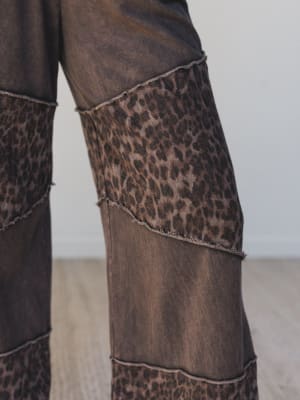 - Milana Leopard Print Wide Leg Pants – These washed brown beauties are patched with bold leopard panels and finished with raw-edge seams for that effortlessly lived-in feel.