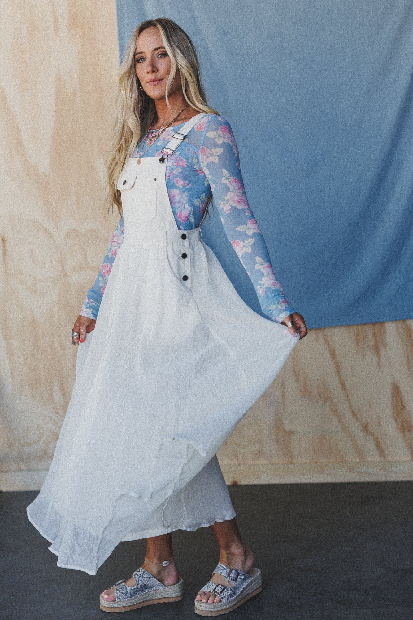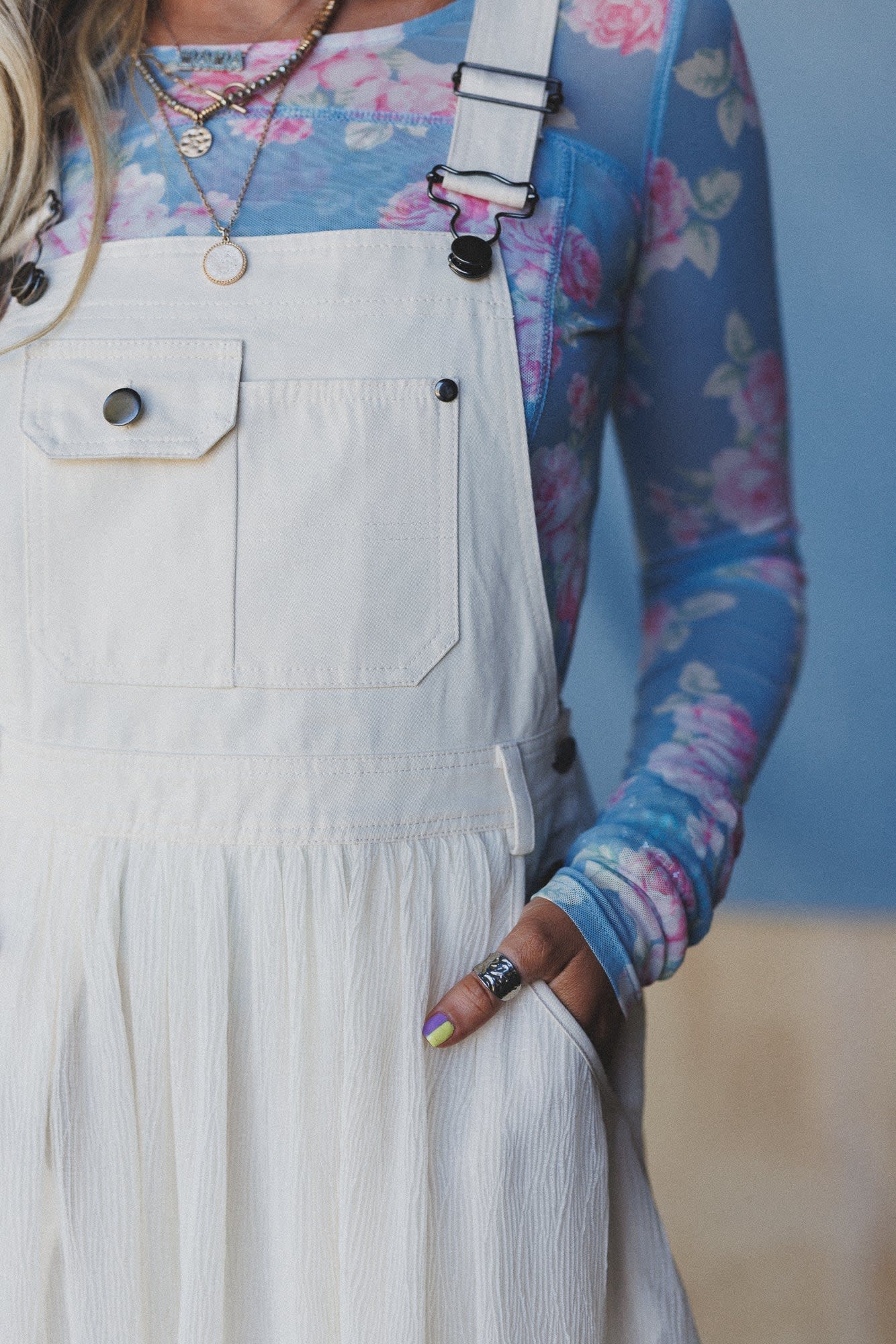 This super cute overall dress goes perfectly with sheer tops or bralettes for a hot summer look.