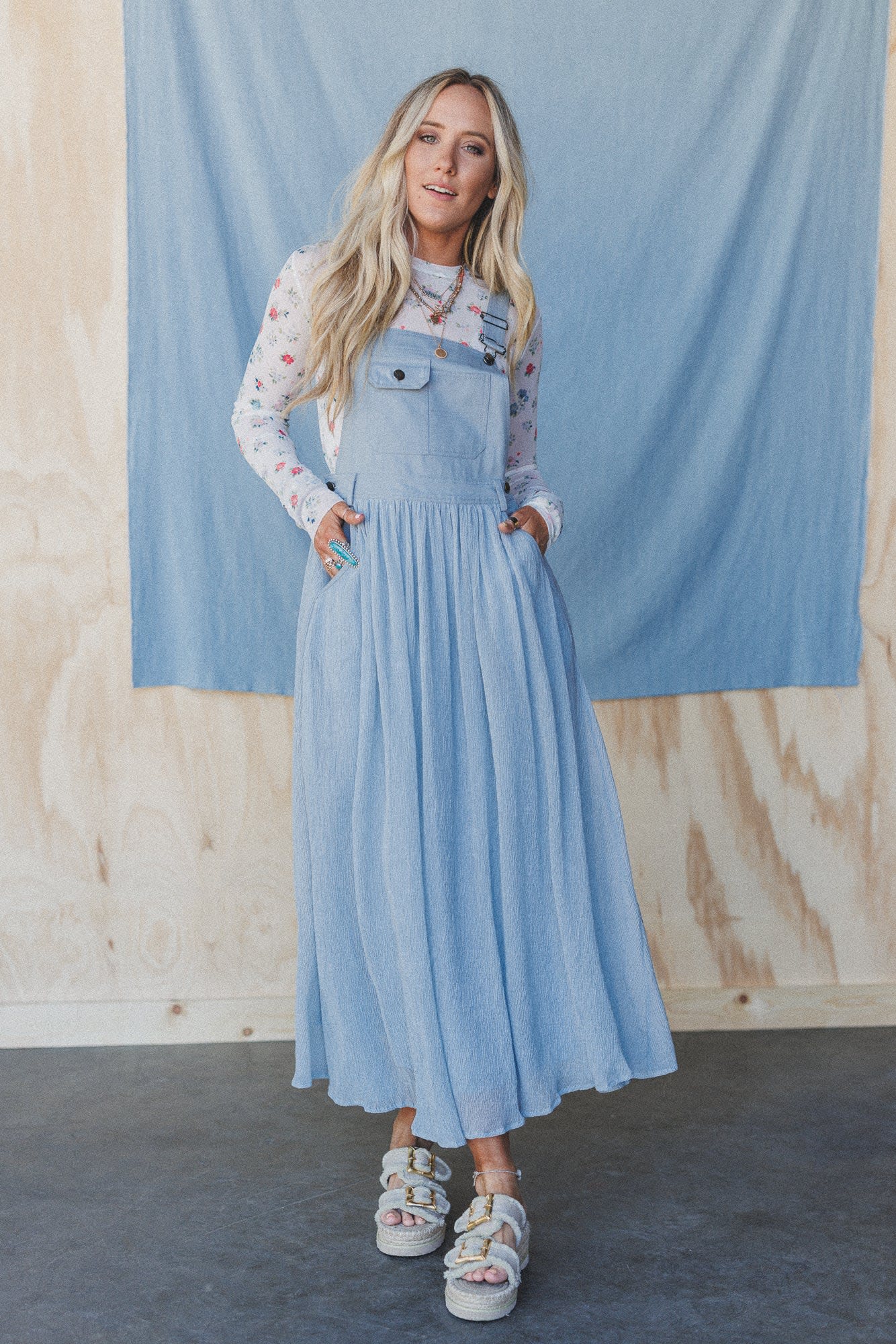 This super cute overall dress goes perfectly with sheer tops or bralettes for a hot summer look.