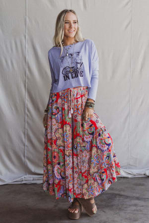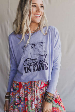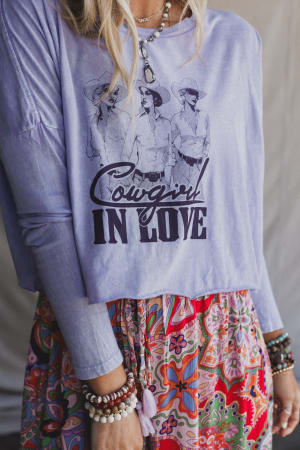 Giddy up in this adorable boho graphic tee with a touch of romance.